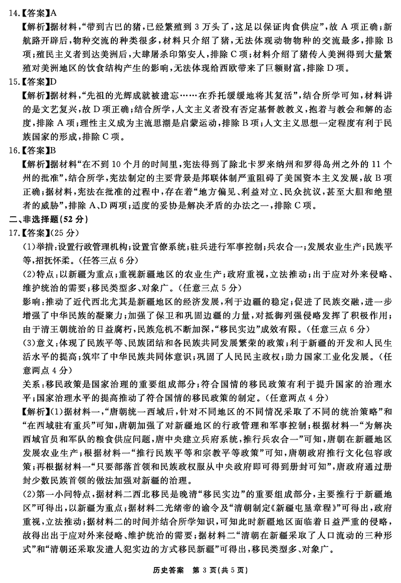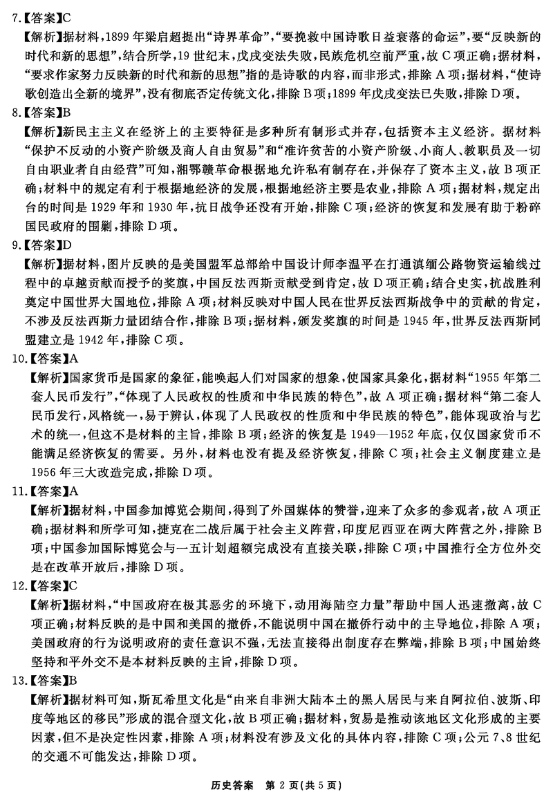 历史试题及答案解析