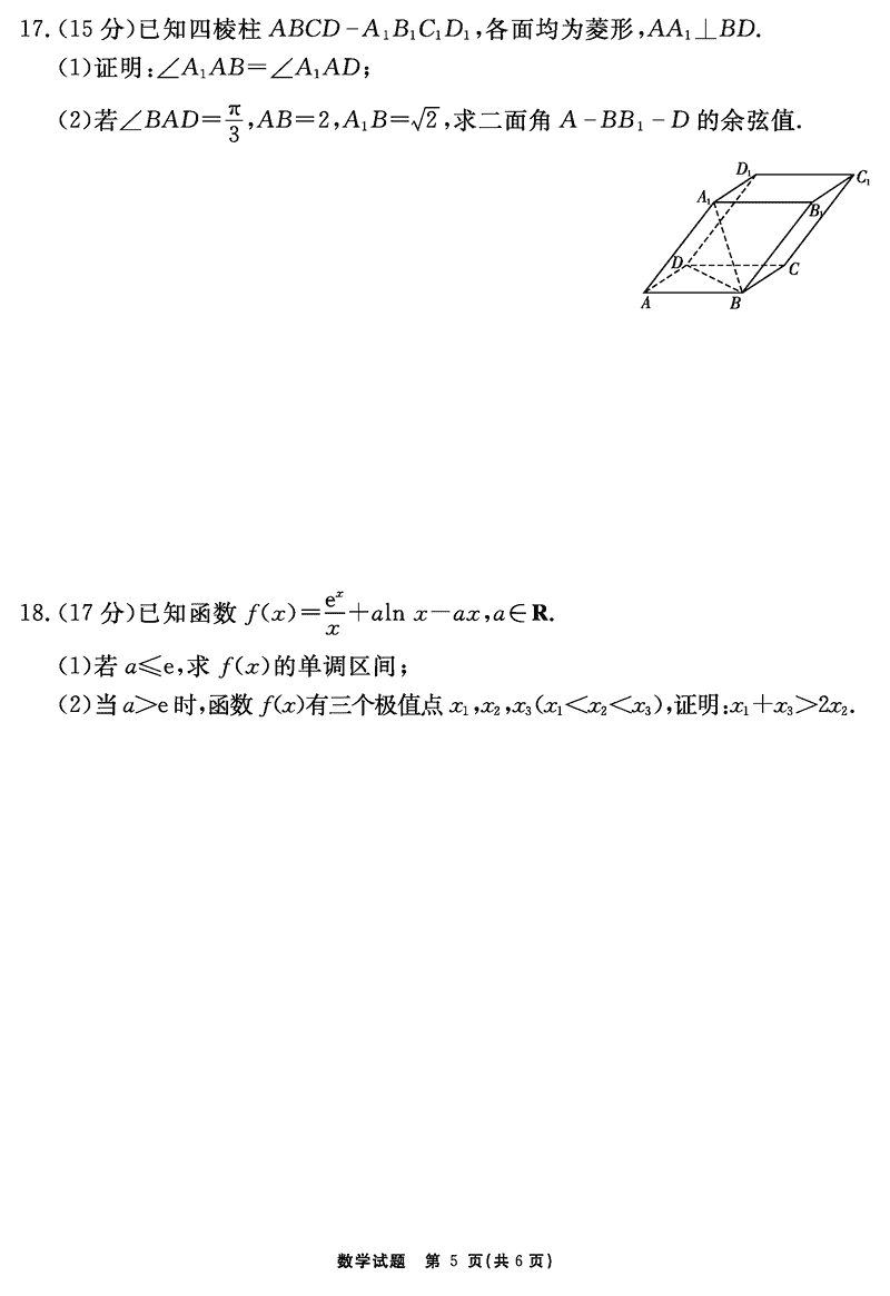 安徽2024-2025学年耀正优12月高三名校阶段检测数学试题及答案