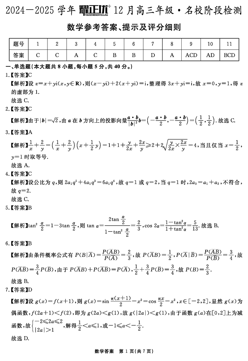 安徽2024-2025学年耀正优12月高三名校阶段检测数学考试已于近日开考,为方便考生考后及时查看考试情况,查漏补缺、弥补不足,本文整理了试题答案解析相关信息!