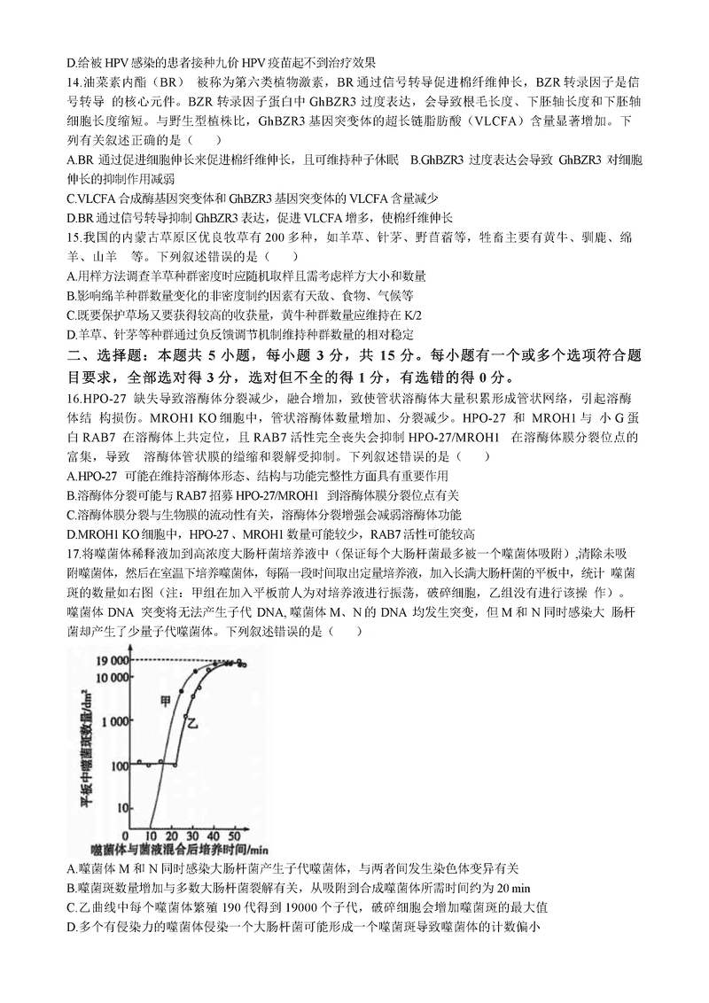 山东齐鲁名校联盟天一大联考2024年12月高三第三次联考生物试题及答案