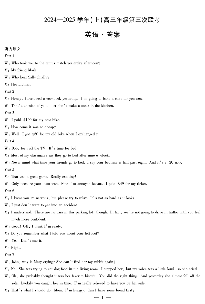 山东齐鲁名校联盟天一大联考2024年12月高三第三次联考英语试题及答案