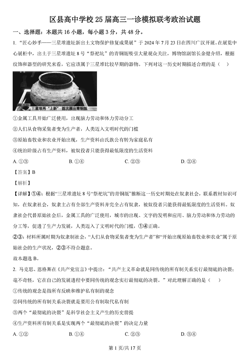 眉山市区县高中2025届高三上学期一诊模拟联考政治考试已于近日开考,为方便考生考后及时查看考试情况,查漏补缺、弥补不足,本文整理了试题答案解析相关信息!