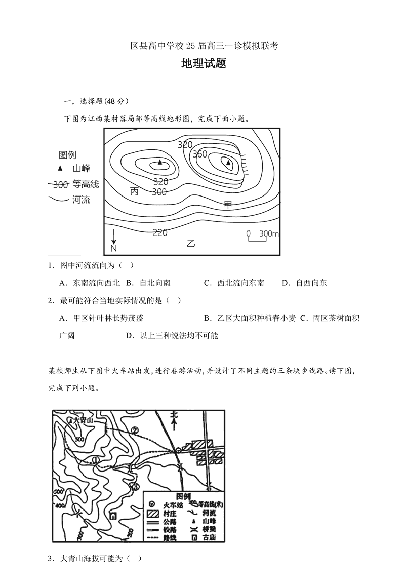 眉山市区县高中2025届高三上学期一诊模拟联考地理试题及答案