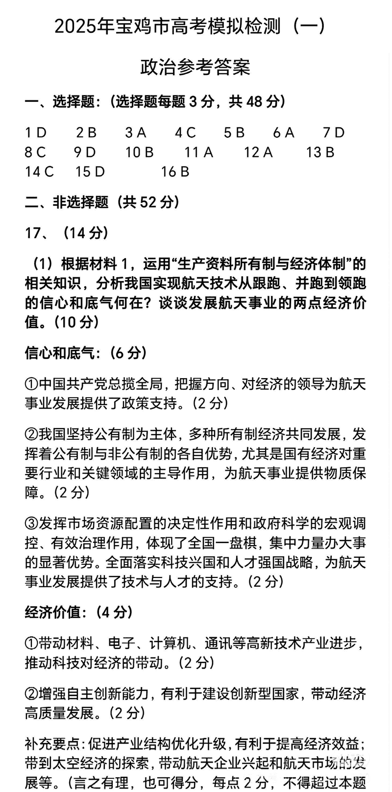 陕西宝鸡2025届高三上学期一模政治试题及答案 时间:2024-12-24 陕西 文综试题 陕西宝鸡2025届高三上学期一模政治考试已于近日开考,为方便考生考后及时查看考试情况,查漏补缺、弥补不足,本文整理了试题答案解析相关信息! 汇总:陕西宝鸡2025届高三上学期一模试题及答案汇总 政治试题及答案解析