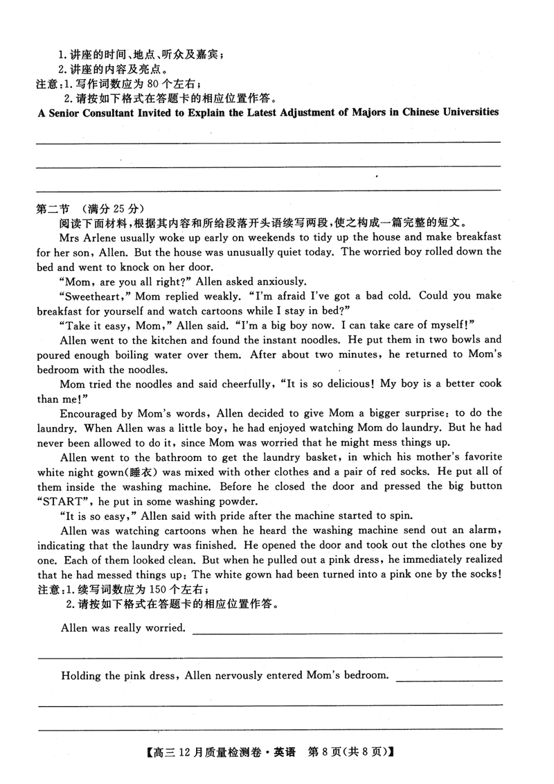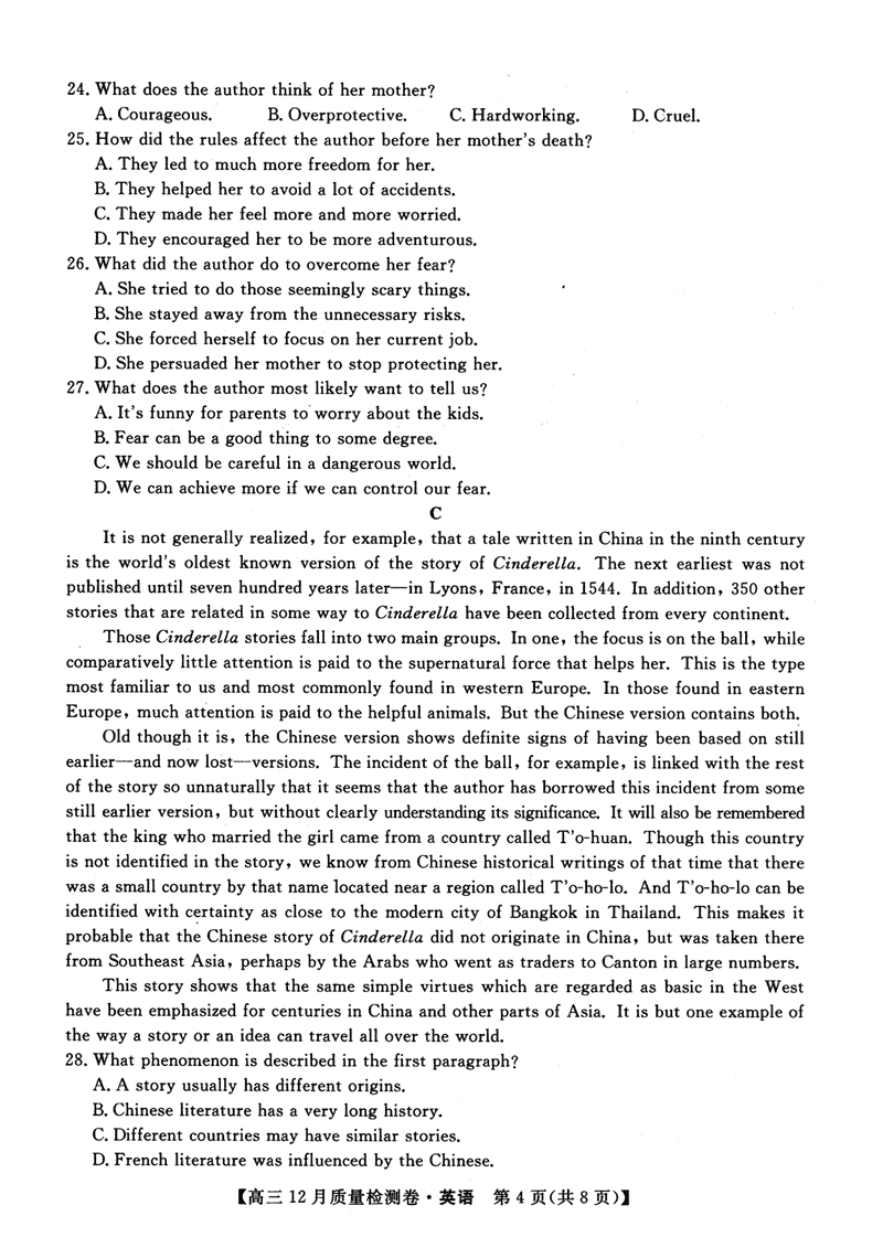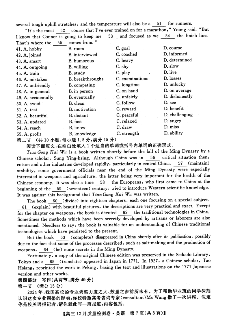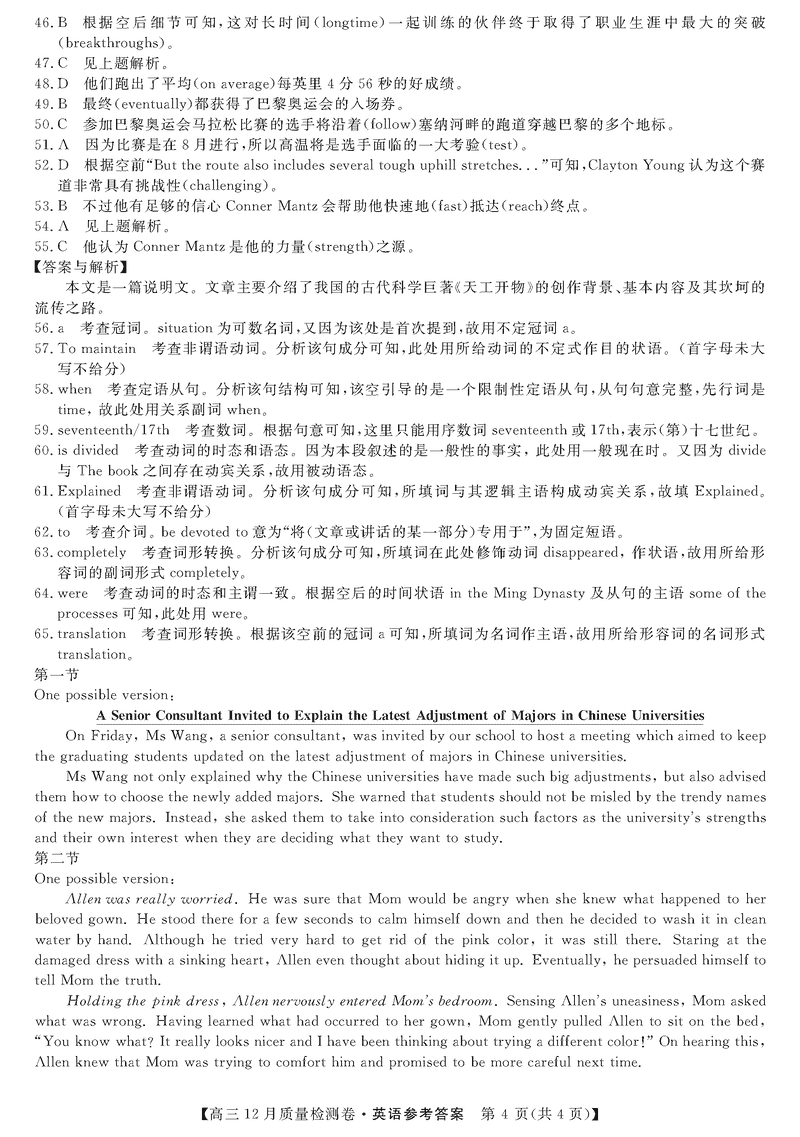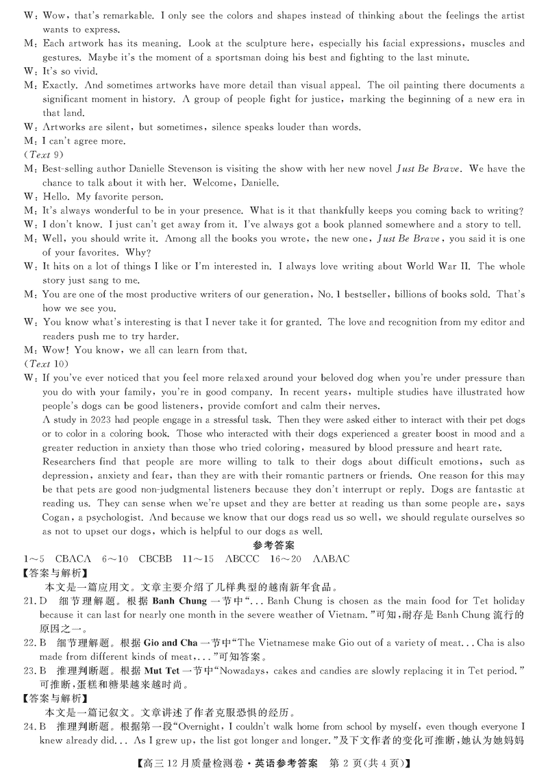 山西三晋卓越联盟2024年12月高三质检英语试题及答案