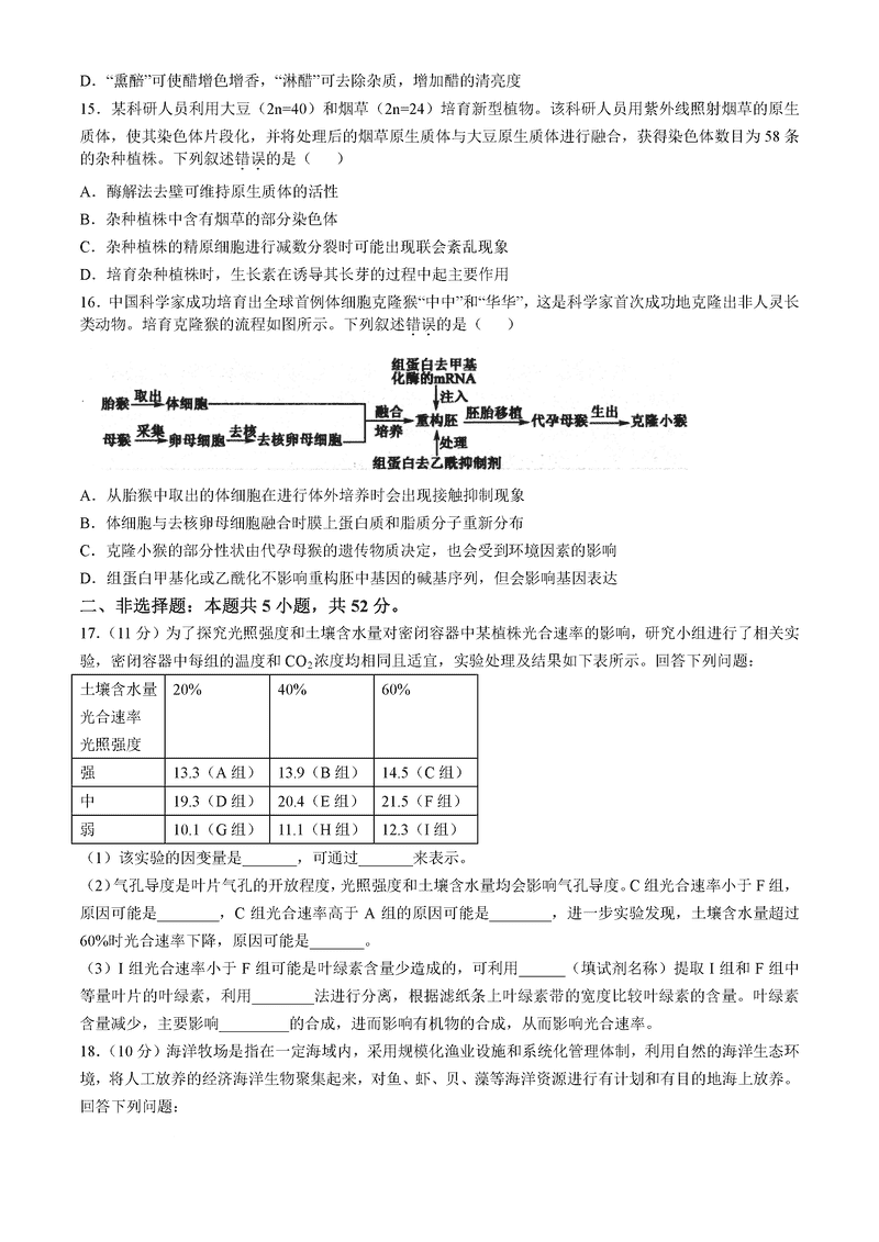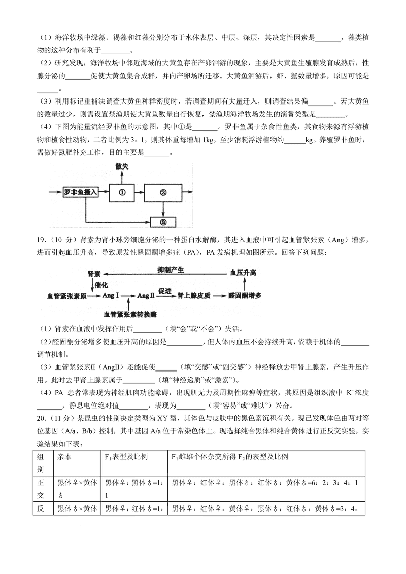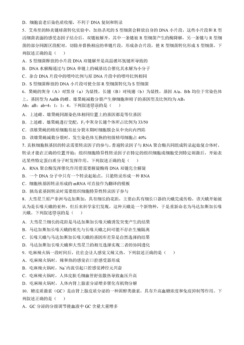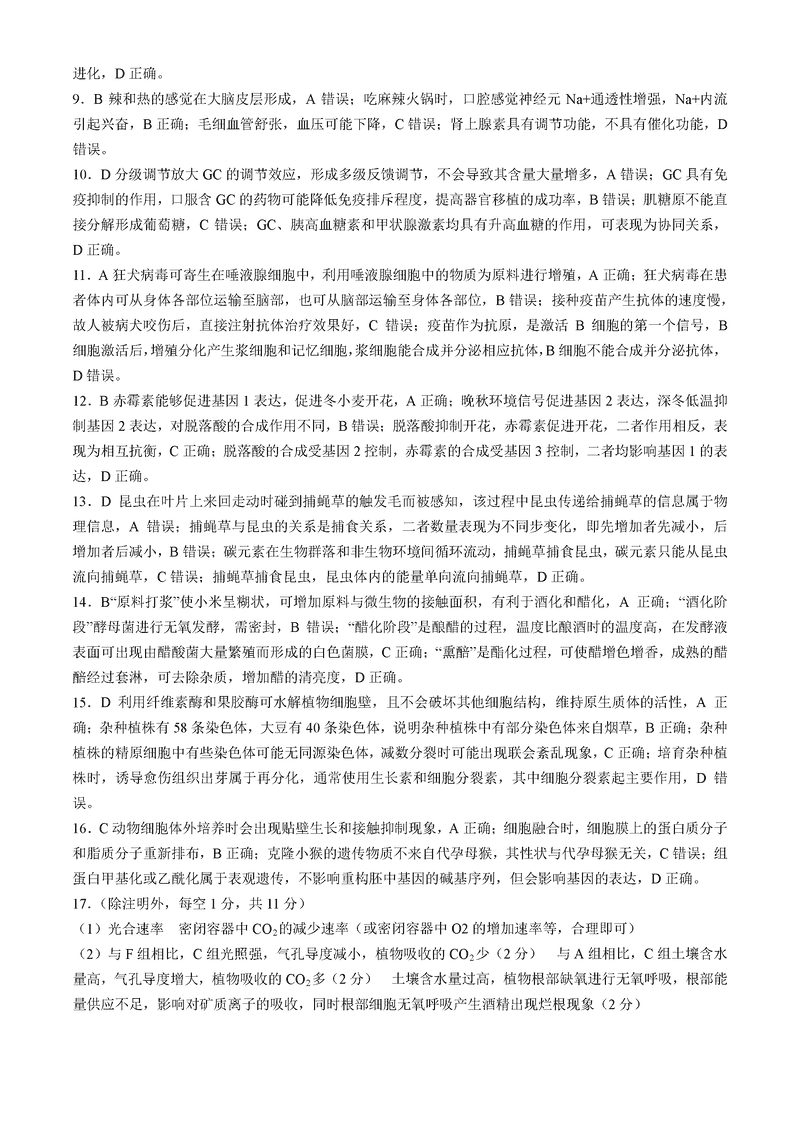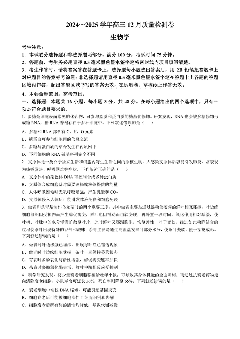 山西三晋卓越联盟2024年12月高三质检生物试题及答案