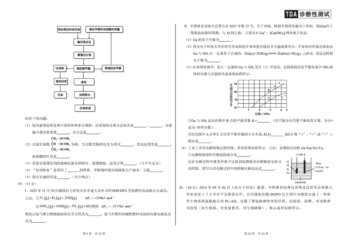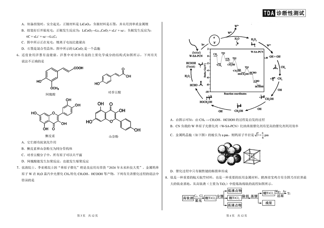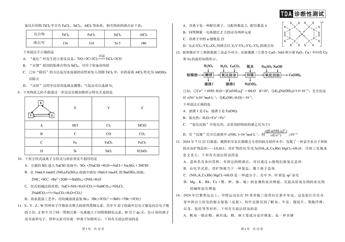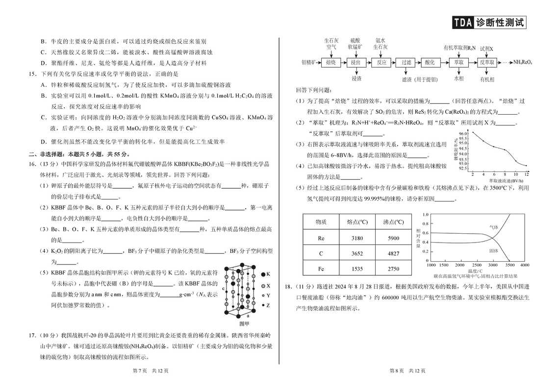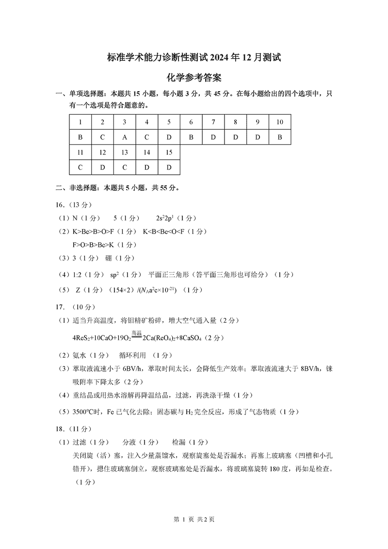 中学生标准学术能力诊断性测试(TDA)2024-2025学年高三上12月测试化学考试已于近日开考,为方便考生考后及时查看考试情况,查漏补缺、弥补不足,本文整理了试题答案解析相关信息!