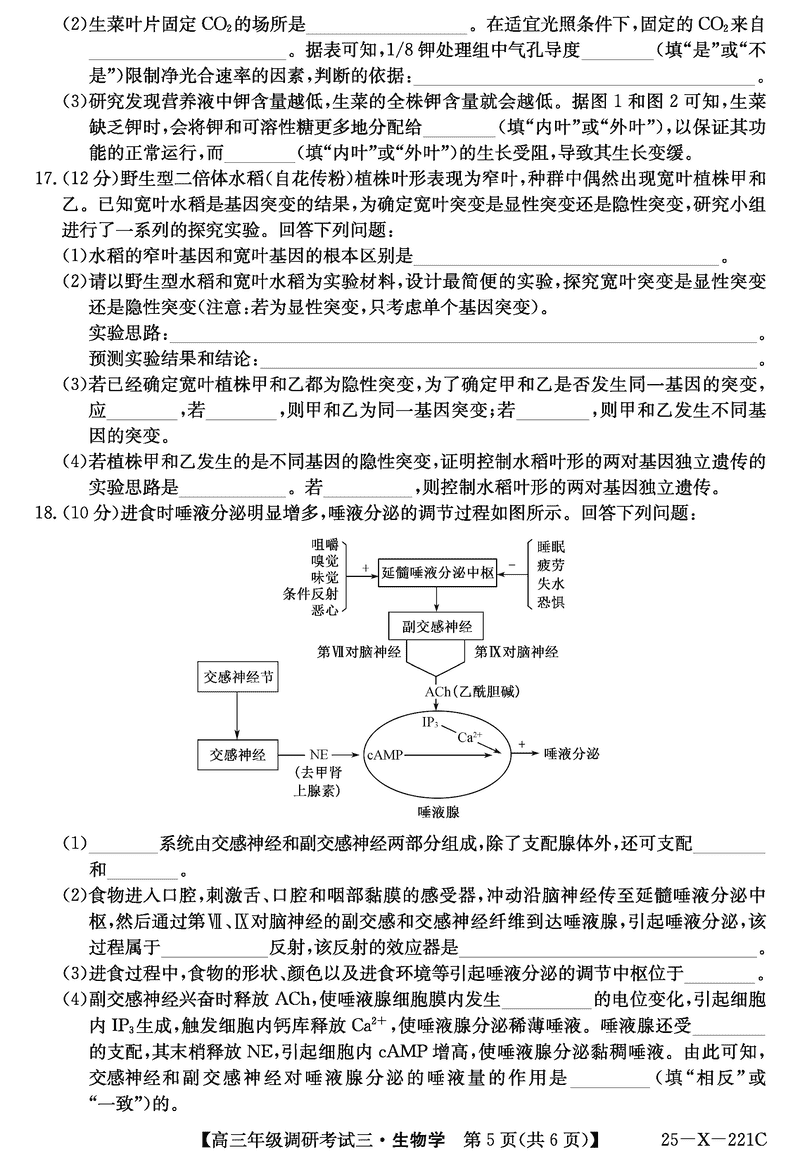 河南省TOP二十名校2025届高三上学期调研(三)生物试题及答案