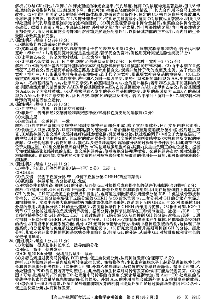 河南省TOP二十名校2025届高三上学期调研(三)生物考试已于近日开考,为方便考生考后及时查看考试情况,查漏补缺、弥补不足,本文整理了试题答案解析相关信息!