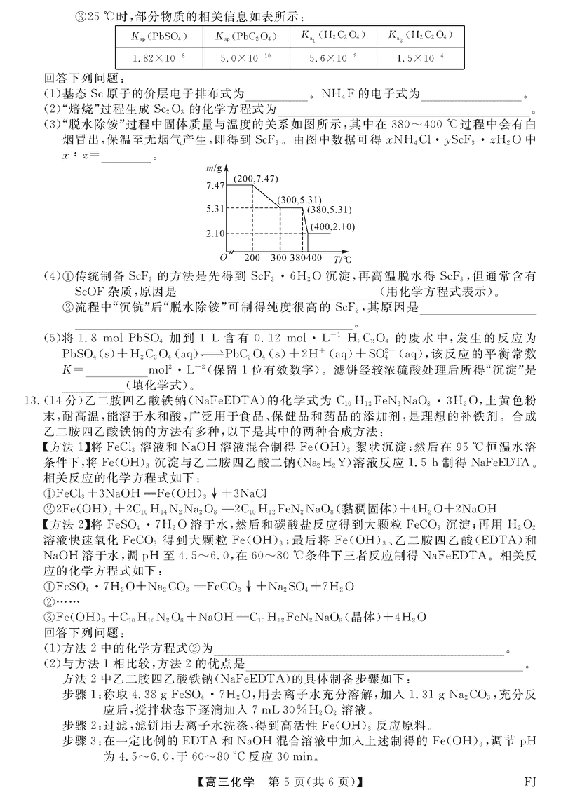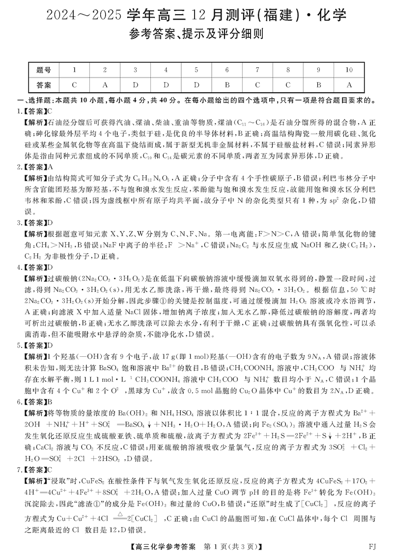 福建省金科大联考2024-2025学年高三12月测评化学考试已于近日开考,为方便考生考后及时查看考试情况,查漏补缺、弥补不足,本文整理了试题答案解析相关信息!