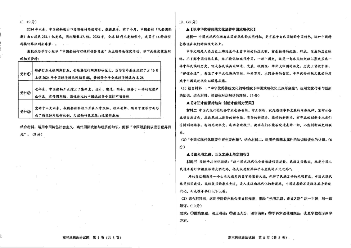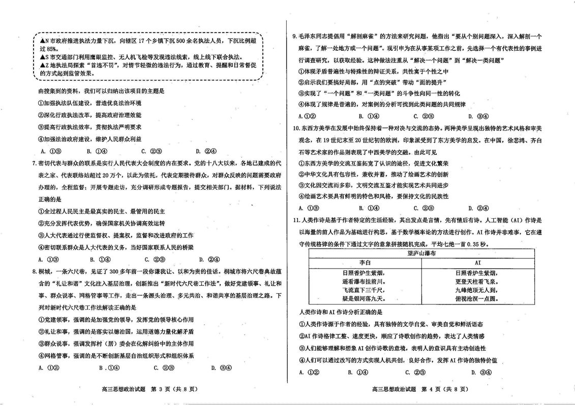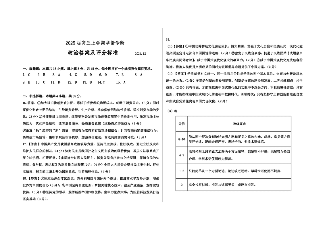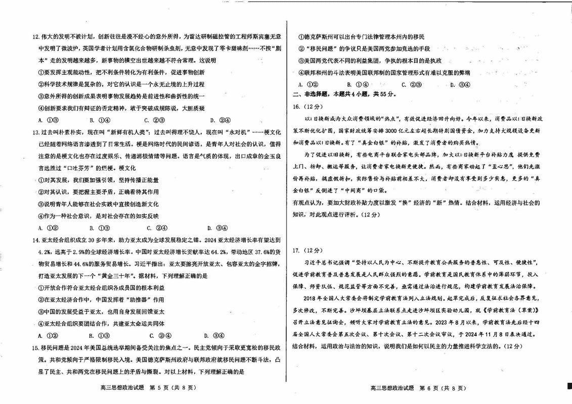 山东中学联盟百校大联考2025届高三上12月学情诊断政治试题及答案