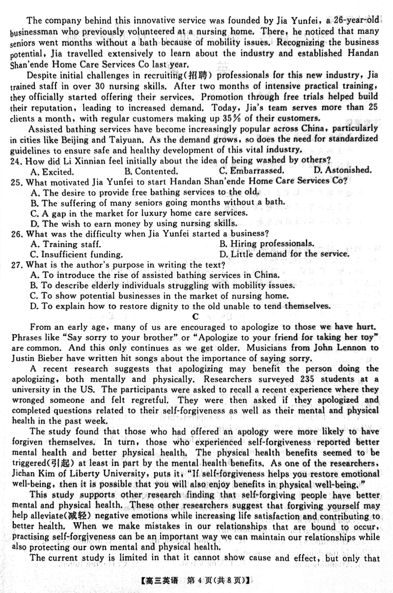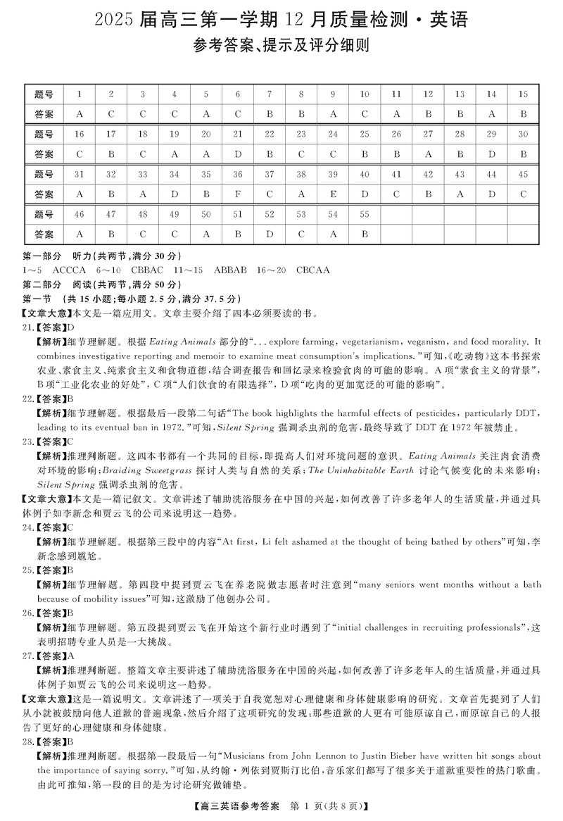 河南省金科大联考2025届高三12月联考英语试题及答案