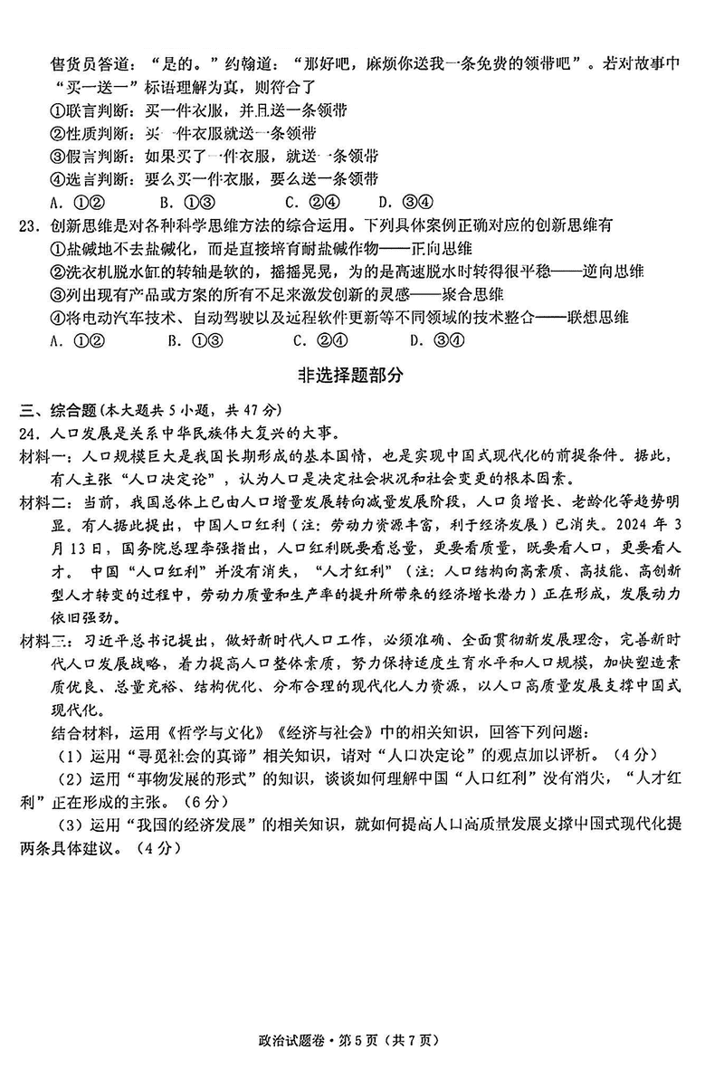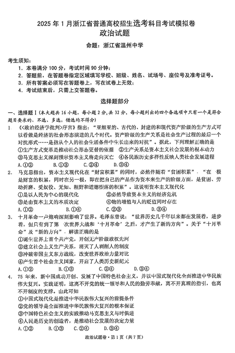 2025届浙江省五校联盟高三12月首考模拟政治试题及答案