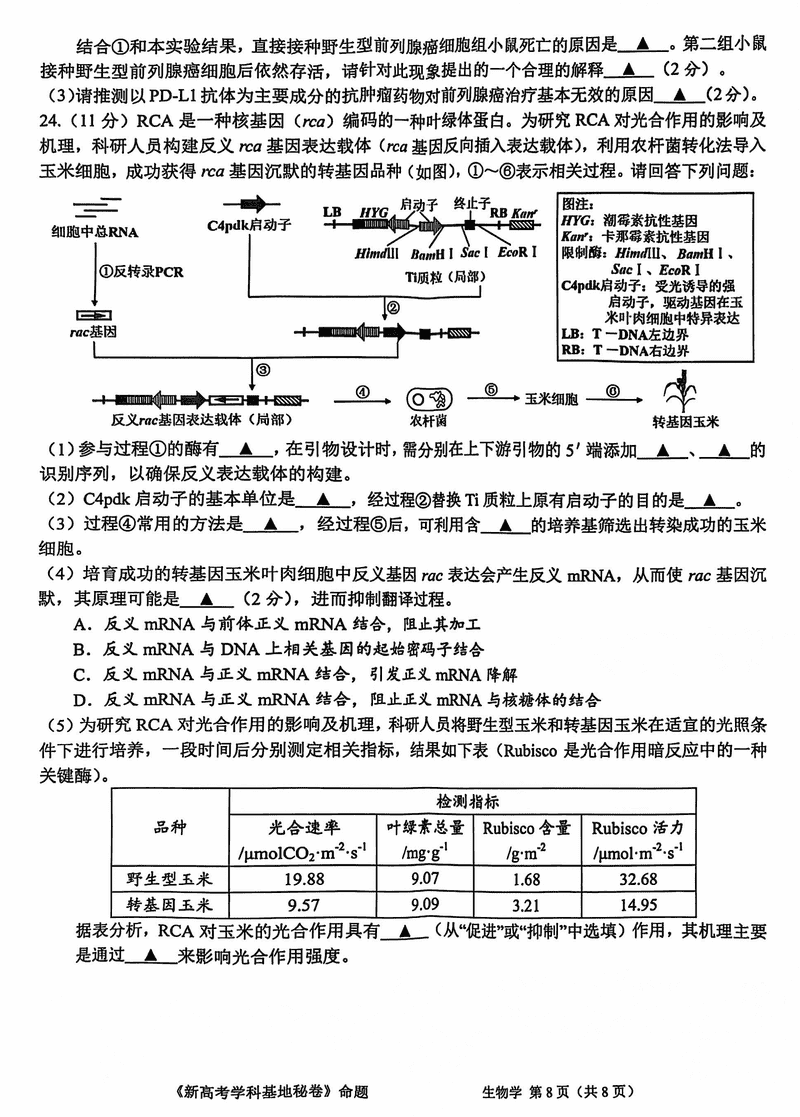 江苏新高考基地学校2025届高三12月第一次大联考生物试题及答案