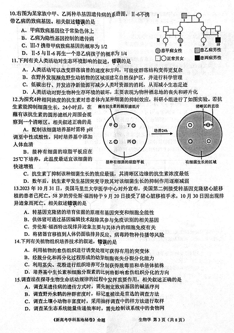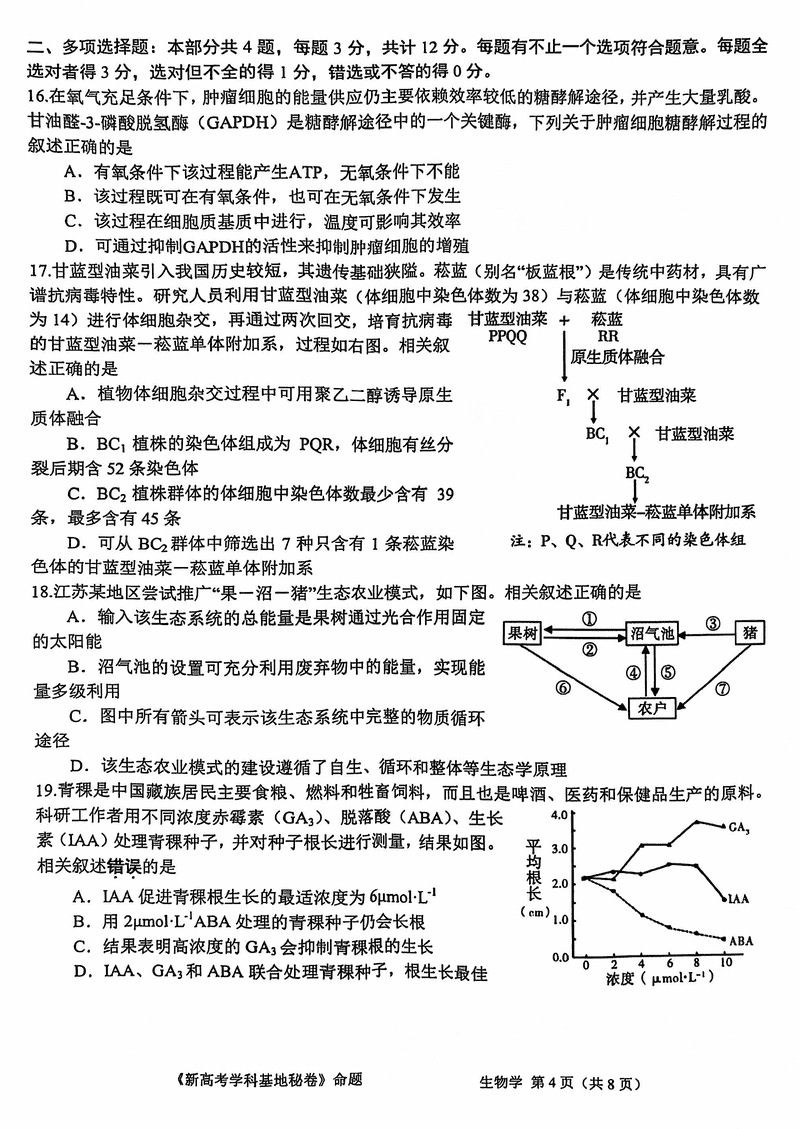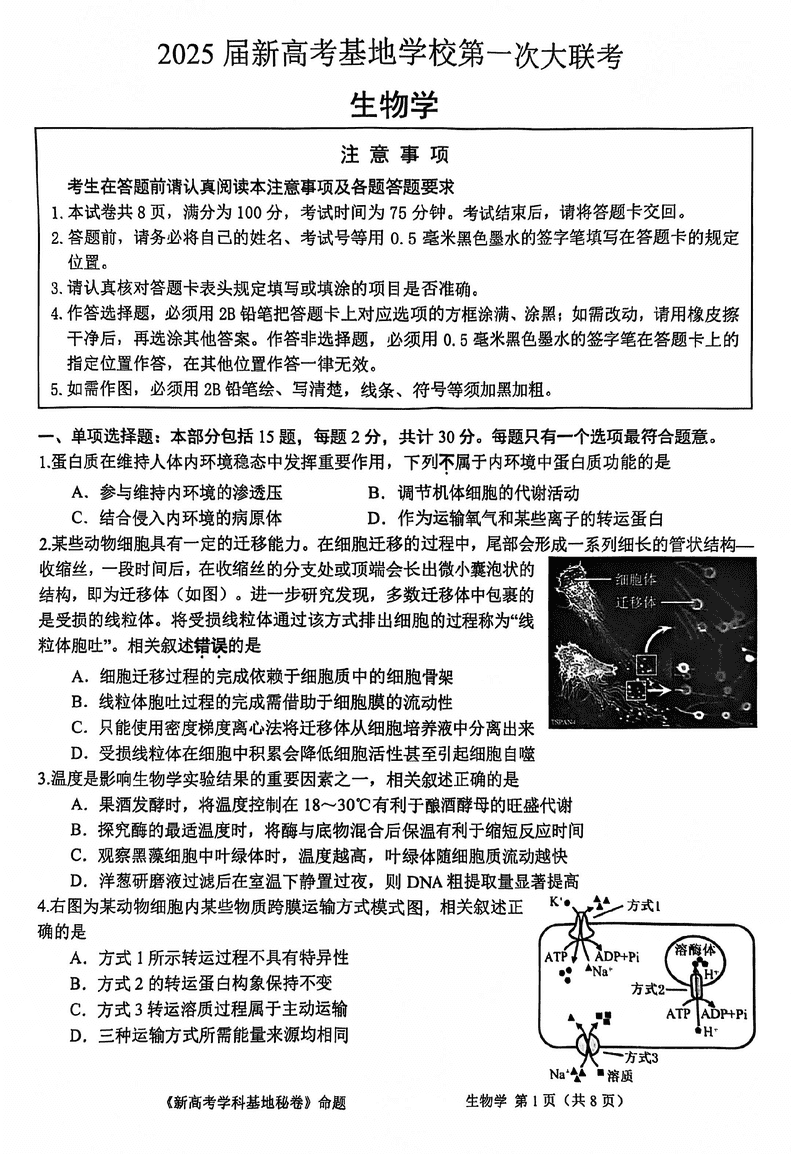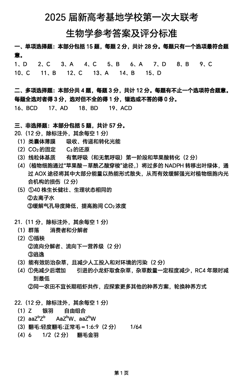 江苏新高考基地学校2025届高三12月第一次大联考生物考试已于近日开考,为方便考生考后及时查看考试情况,查漏补缺、弥补不足,本文整理了试题答案解析相关信息!