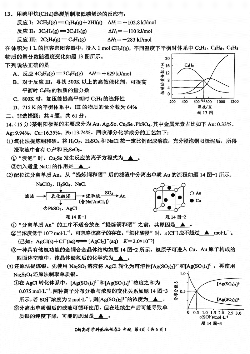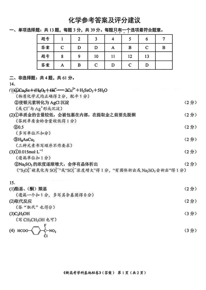 江苏新高考基地学校2025届高三12月第一次大联考化学考试已于近日开考,为方便考生考后及时查看考试情况,查漏补缺、弥补不足,本文整理了试题答案解析相关信息!