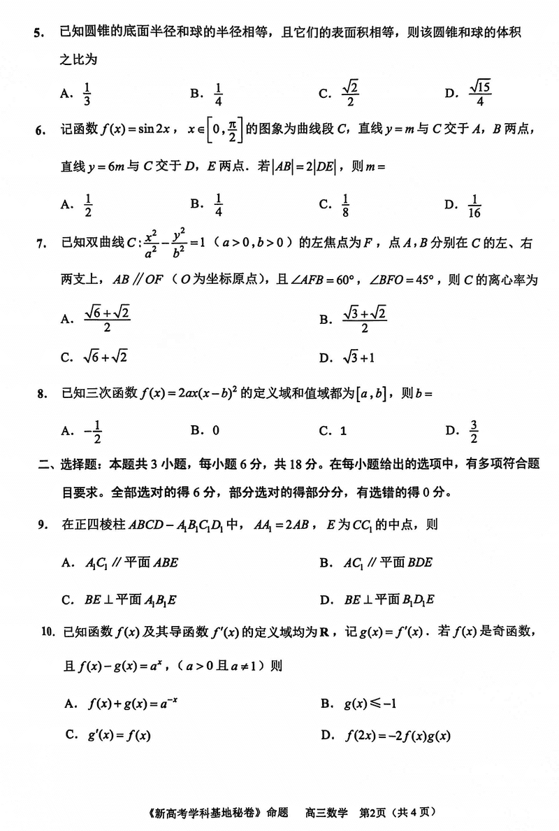 江苏新高考基地学校2025届高三12月第一次大联考数学考试已于近日开考,为方便考生考后及时查看考试情况,查漏补缺、弥补不足,本文整理了试题答案解析相关信息!