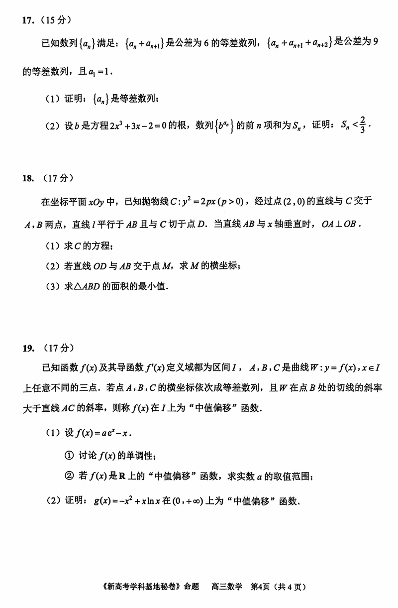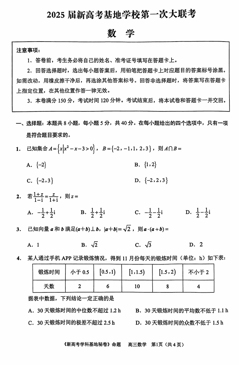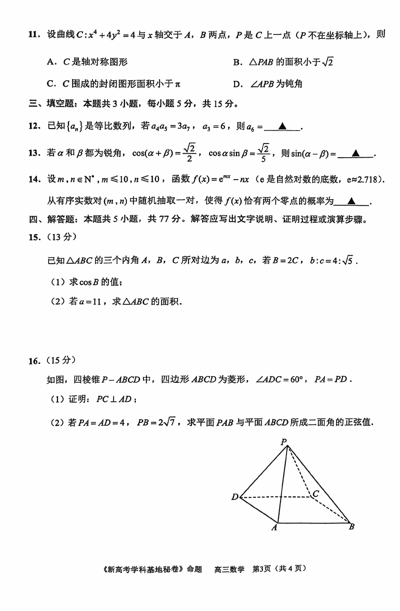 江苏新高考基地学校2025届高三12月第一次大联考数学试题及答案