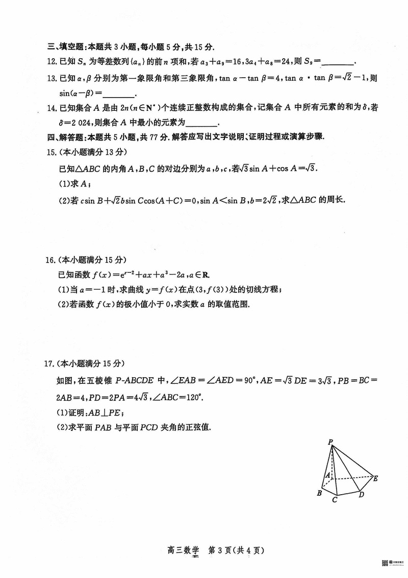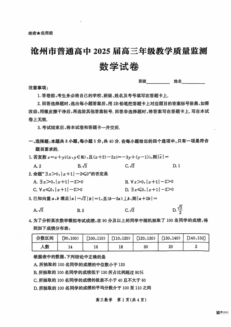 沧州市普通高中2025届高三12月教学质量监测数学考试已于近日开考,为方便考生考后及时查看考试情况,查漏补缺、弥补不足,本文整理了试题答案解析相关信息!
