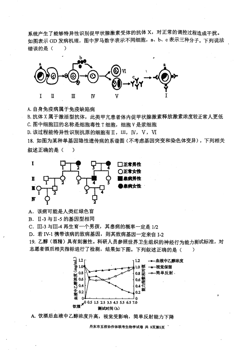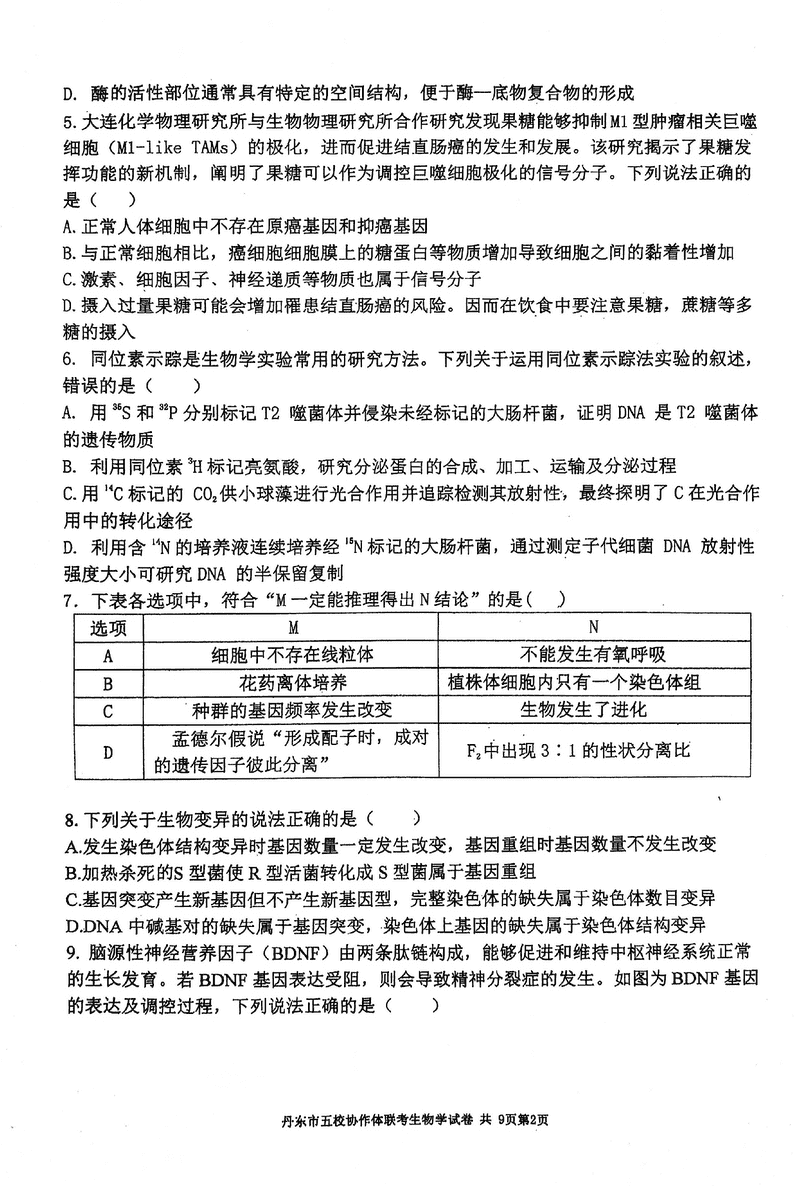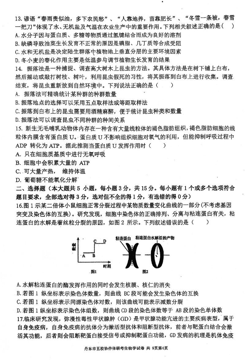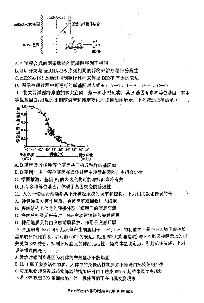 丹东五校协作体2025届高三上12月联考生物试题及答案