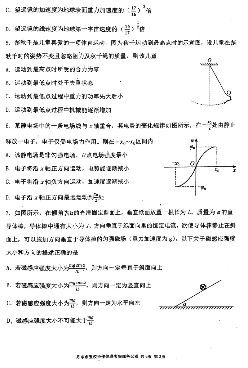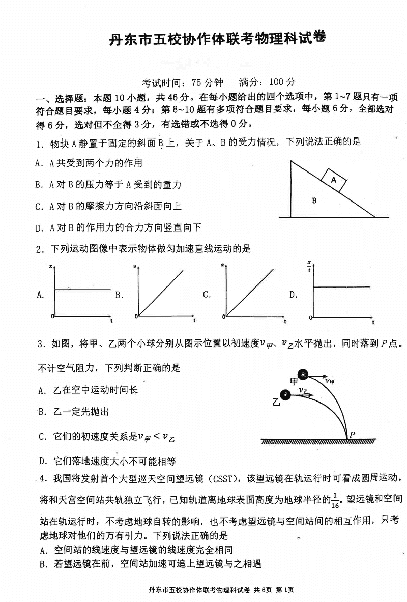 丹东五校协作体2025届高三上12月联考物理试题及答案