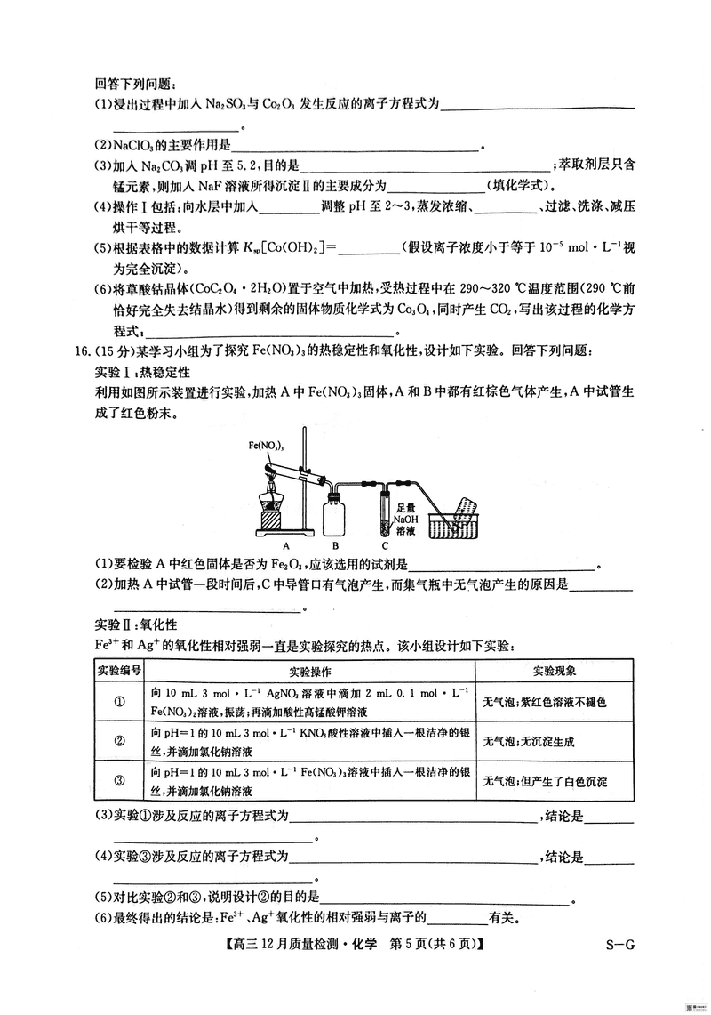 2025届九师联盟高三12月质量检测联考化学考试已于近日开考,为方便考生考后及时查看考试情况,查漏补缺、弥补不足,本文整理了试题答案解析相关信息!