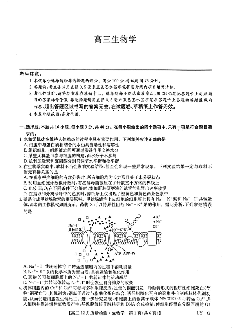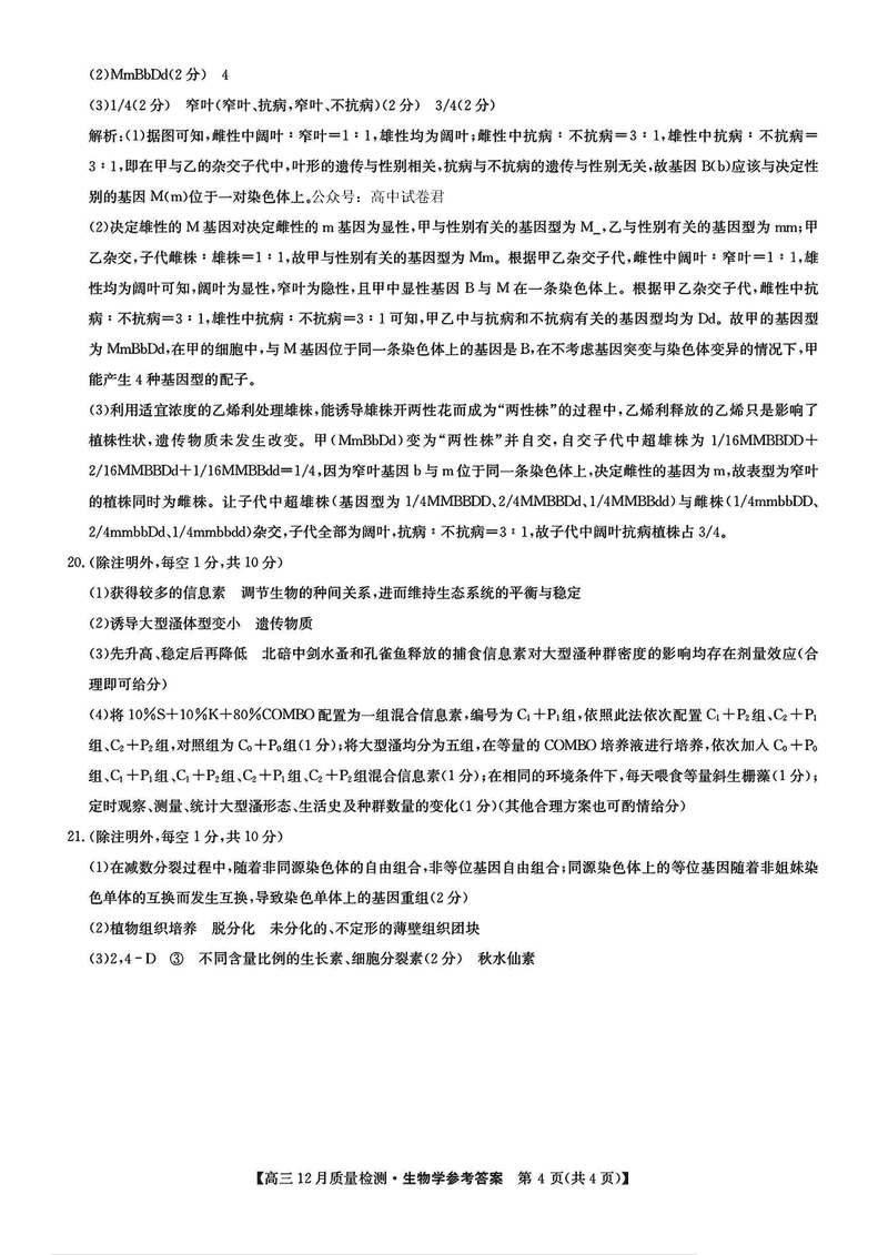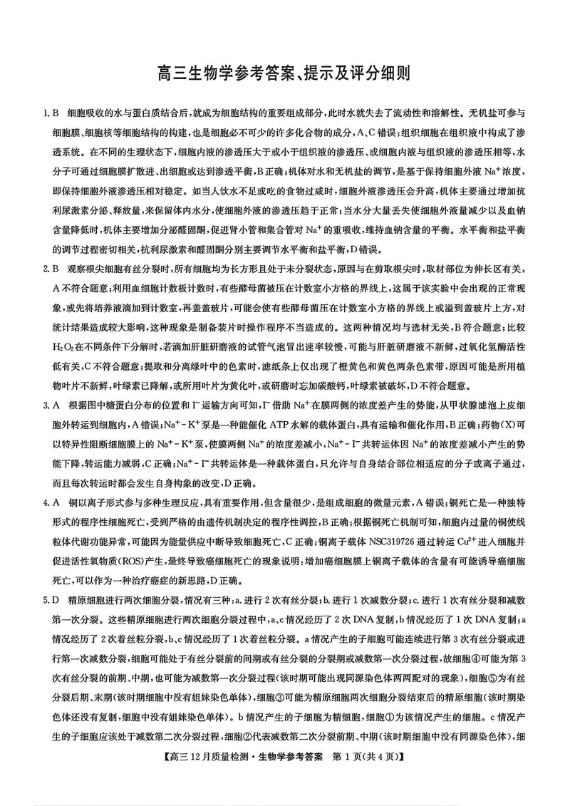 2025届九师联盟高三12月质量检测联考生物试题及答案
