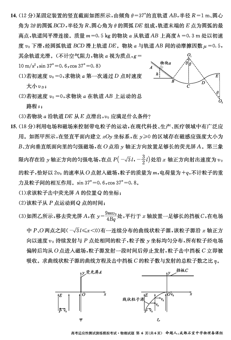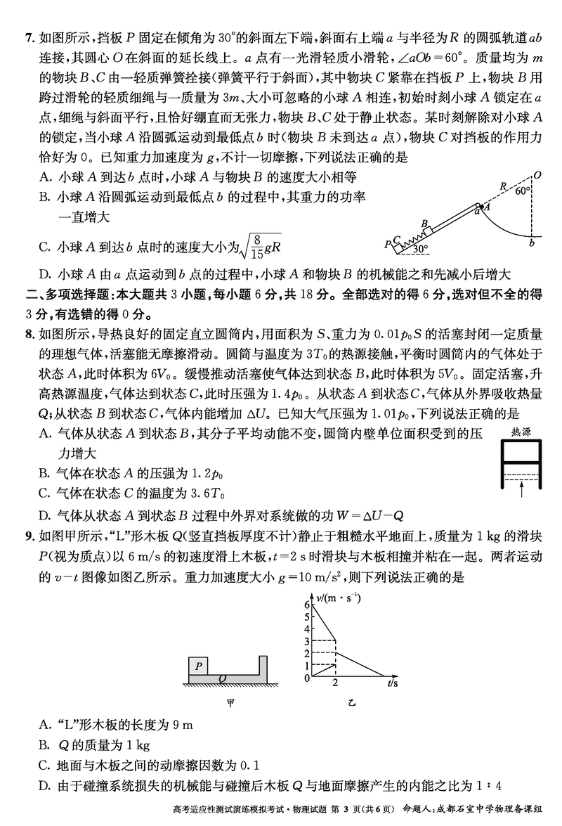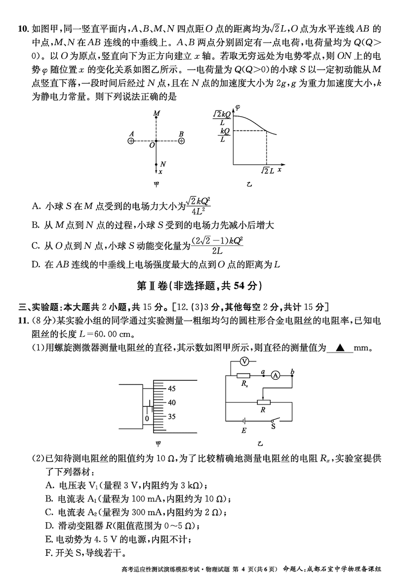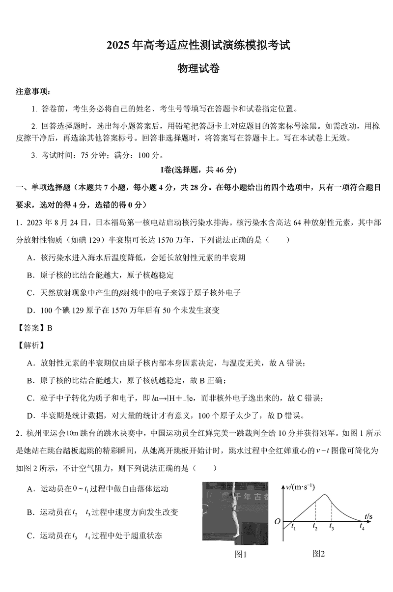 成都石室中学2025年高考适应性测试演练八省联考模拟物理考试已于近日开考,为方便考生考后及时查看考试情况,查漏补缺、弥补不足,本文整理了试题答案解析相关信息!