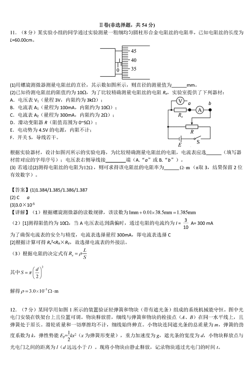 物理试题及答案解析
