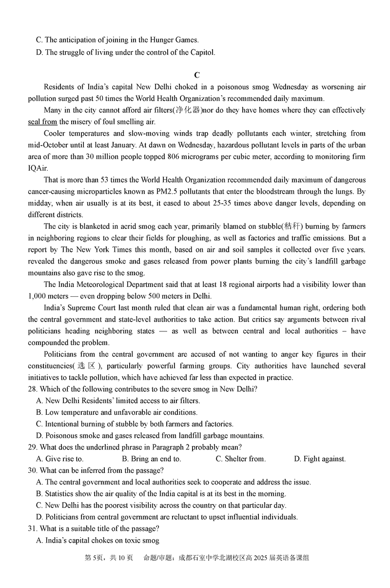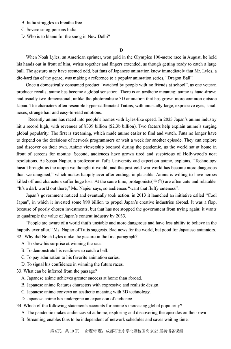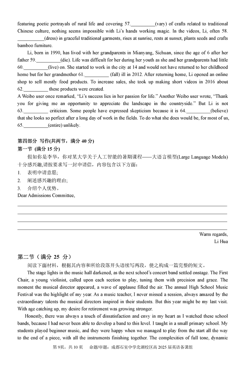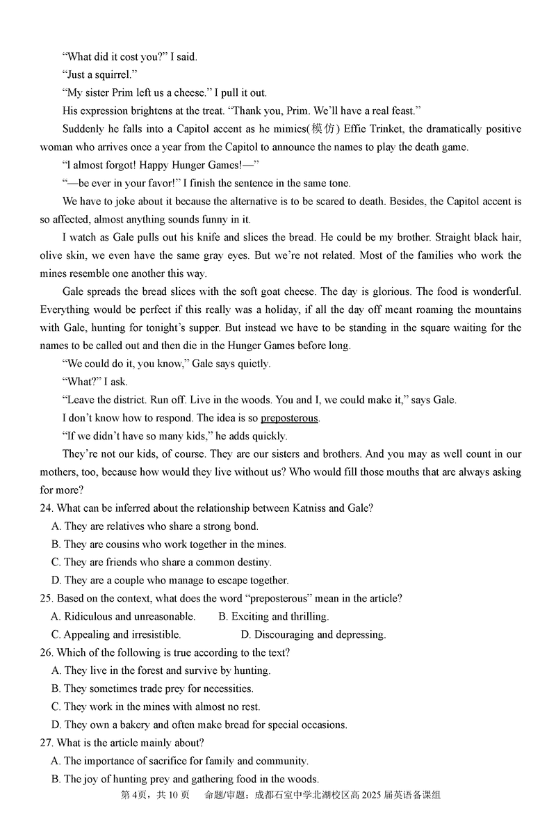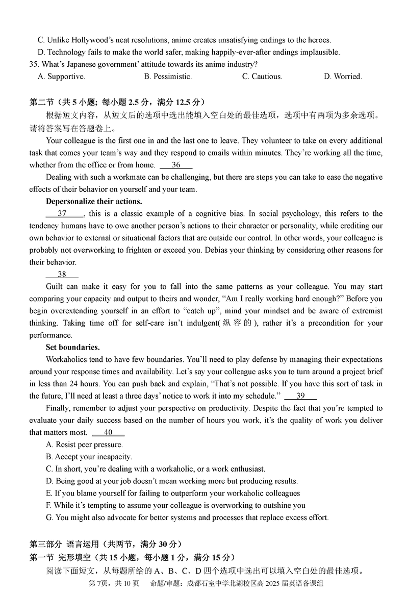 成都石室中学2025年高考适应性测试演练八省联考模拟英语试题及答案