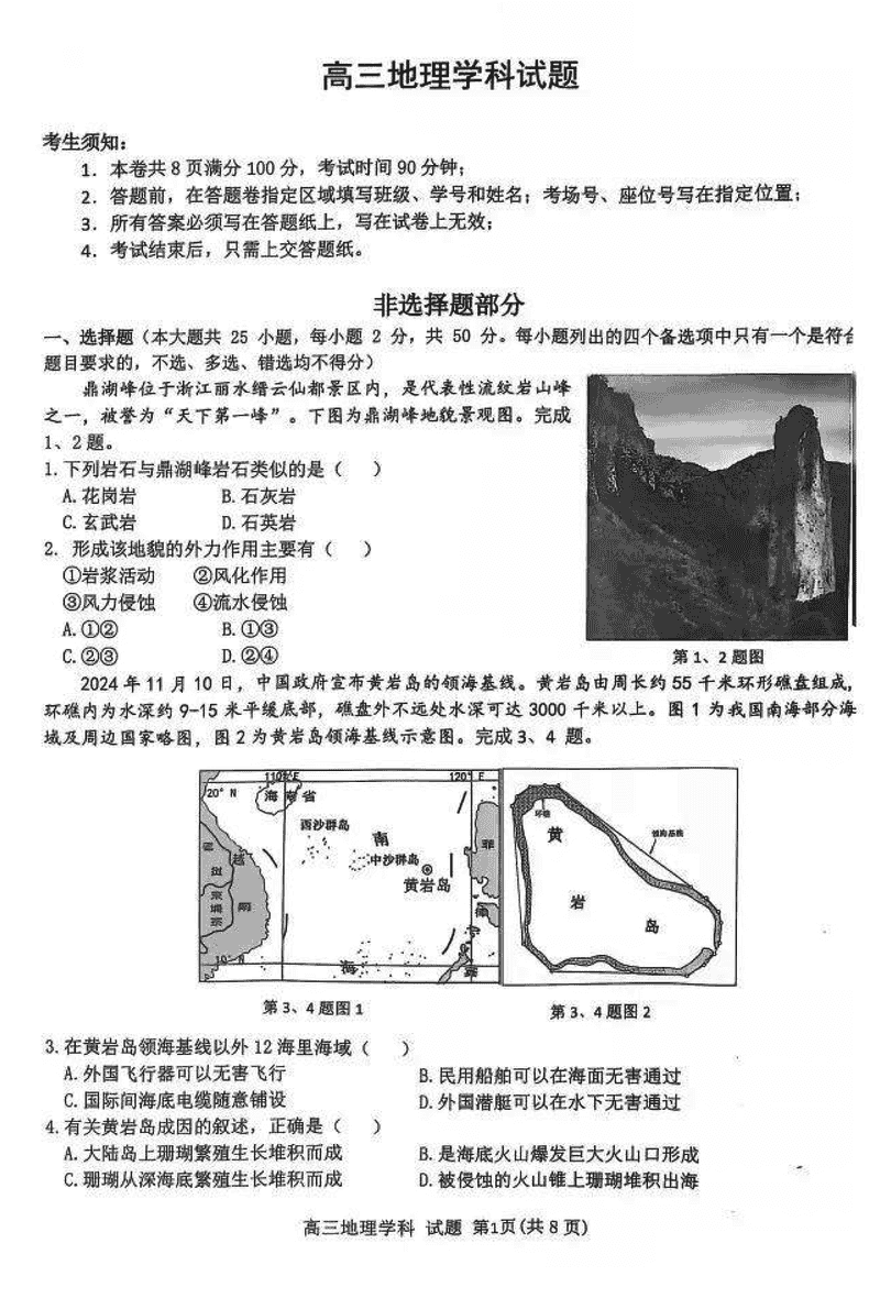 地理试题及答案解析