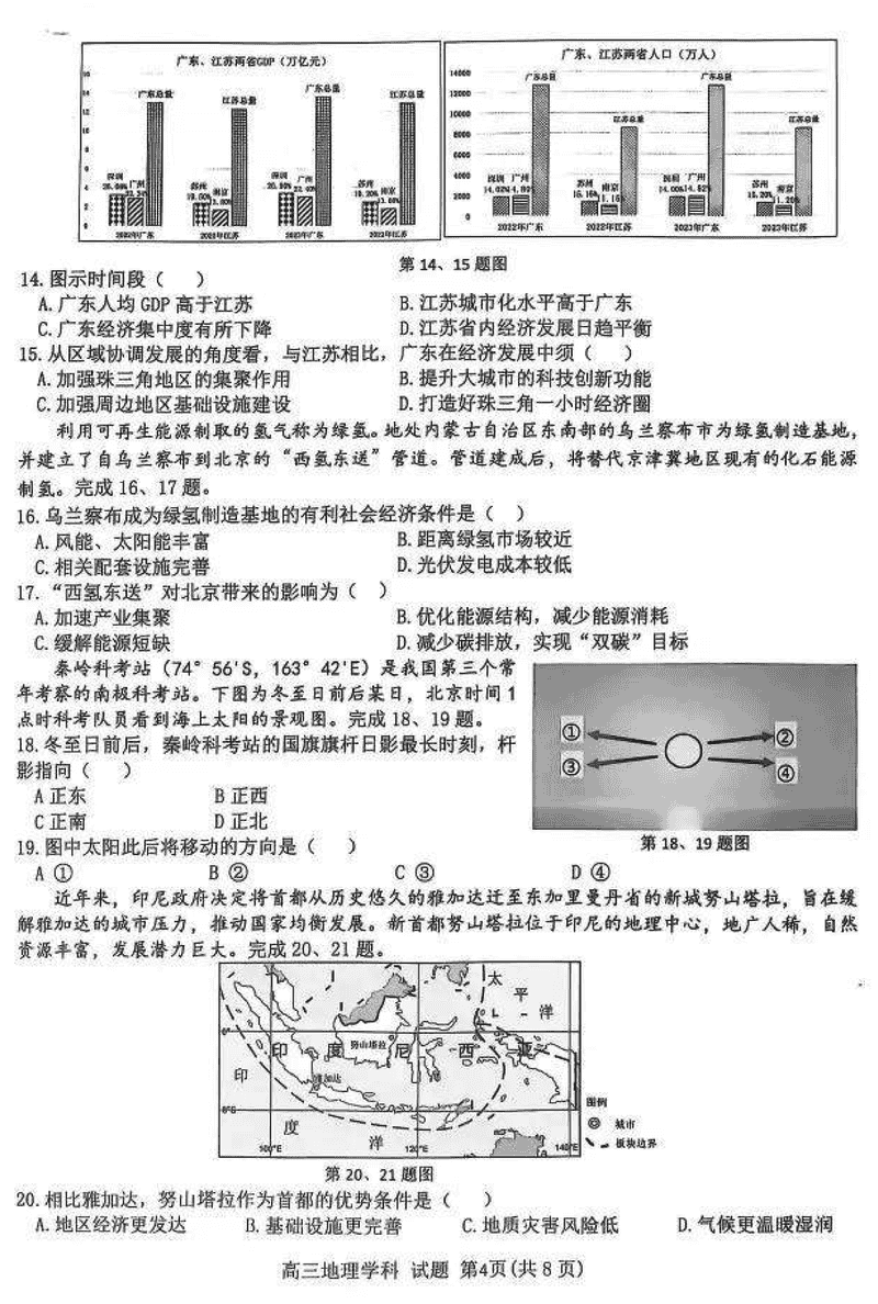 浙江北斗星盟2024年高三上学期12月月考地理试题及答案