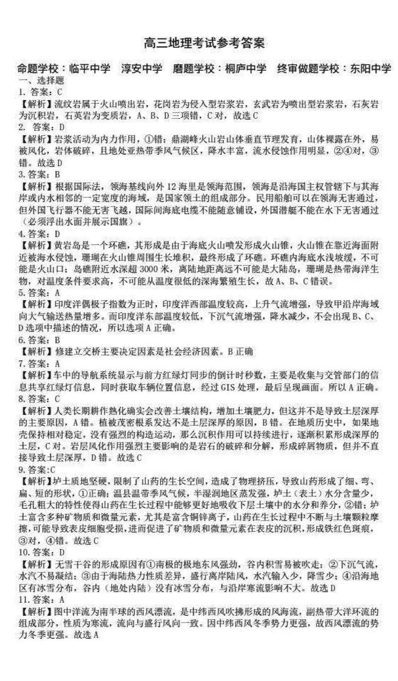 浙江北斗星盟2024年高三上学期12月月考地理考试已于近日开考,为方便考生考后及时查看考试情况,查漏补缺、弥补不足,本文整理了试题答案解析相关信息!