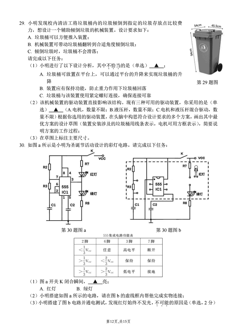 浙江北斗星盟2024年高三上学期12月月考技术试题及答案