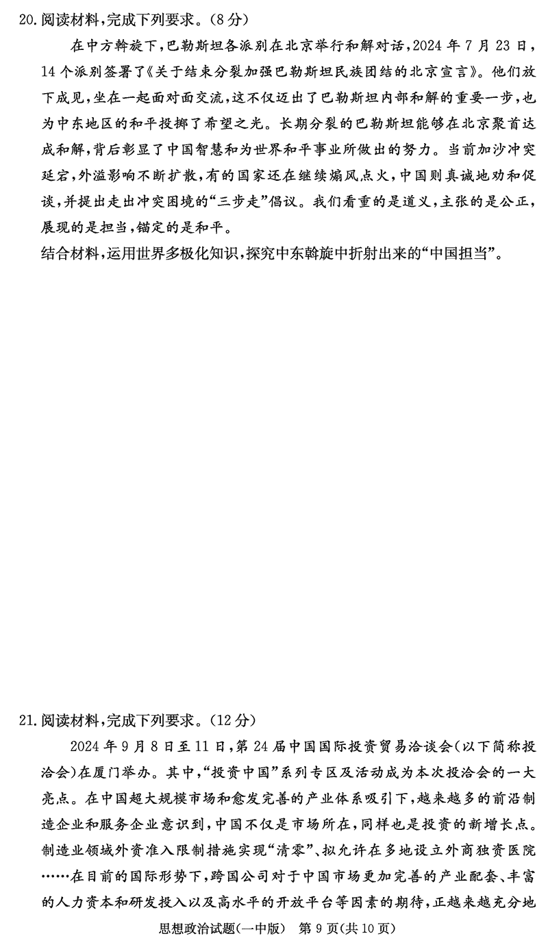 长沙市一中2025届高三月考试卷(四)政治试题及答案 时间:2024-12-30 湖南 文综试题 长沙市一中2025届高三月考试卷(四)政治考试已于近日开考,为方便考生考后及时查看考试情况,查漏补缺、弥补不足,本文整理了试题答案解析相关信息! 汇总:长沙市一中2025届高三月考试卷(四)试题及答案汇总 政治试题及答案解析