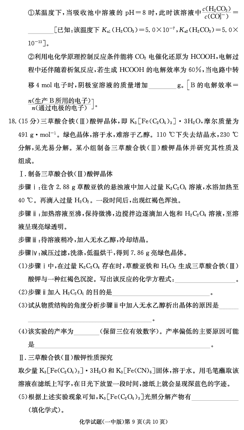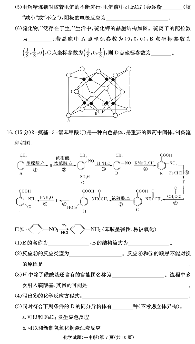 长沙市一中2025届高三月考试卷(四)化学试题及答案 时间:2024-12-30 湖南 理综试题 长沙市一中2025届高三月考试卷(四)化学考试已于近日开考,为方便考生考后及时查看考试情况,查漏补缺、弥补不足,本文整理了试题答案解析相关信息! 汇总:长沙市一中2025届高三月考试卷(四)试题及答案汇总 化学试题及答案解析