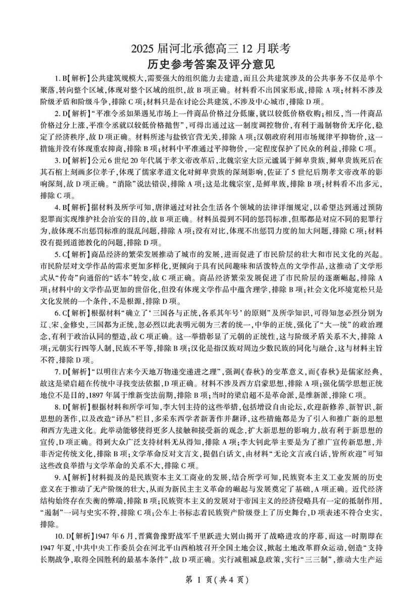 河北承德2025届高三上学期12月联考历史试题及答案 时间:2024-12-30 河北 文综试题 浙江北斗星盟2024年高三上学期12月月考历史考试已于近日开考,为方便考生考后及时查看考试情况,查漏补缺、弥补不足,本文整理了试题答案解析相关信息! 汇总:河北承德2025届高三上学期12月联考试题及答案汇总 历史试题及答案解析