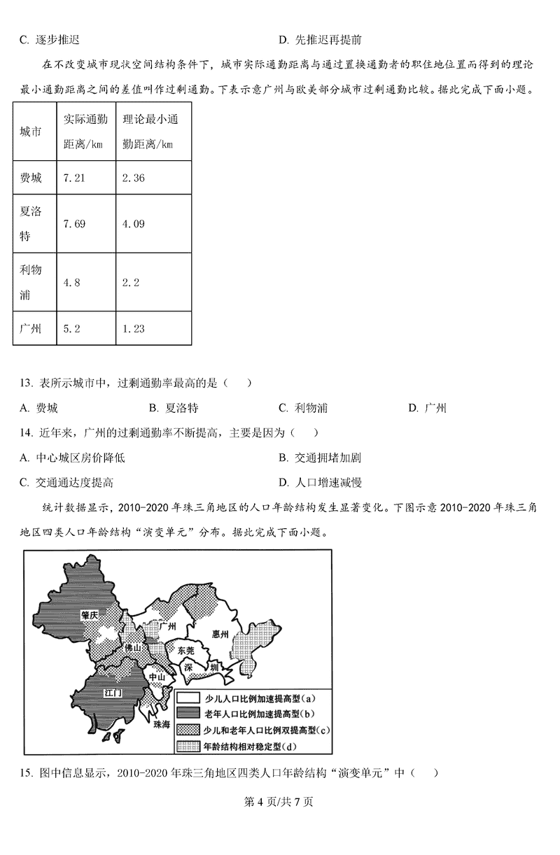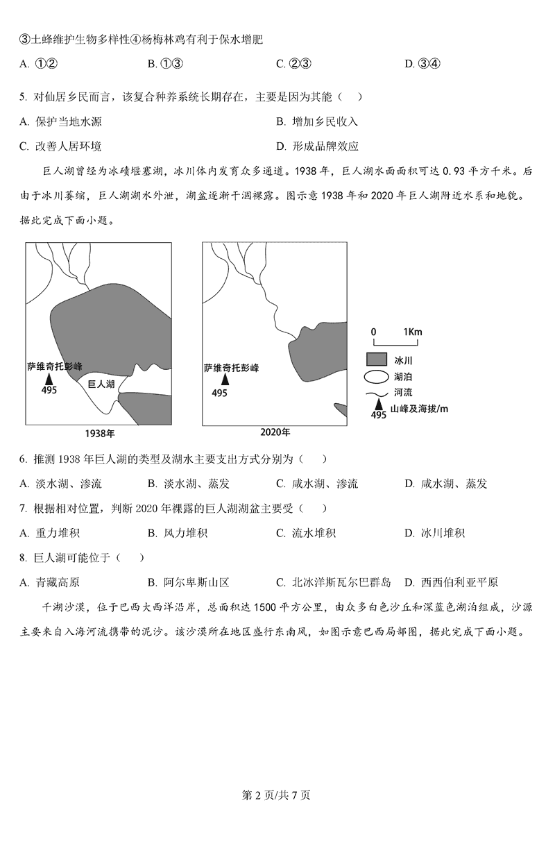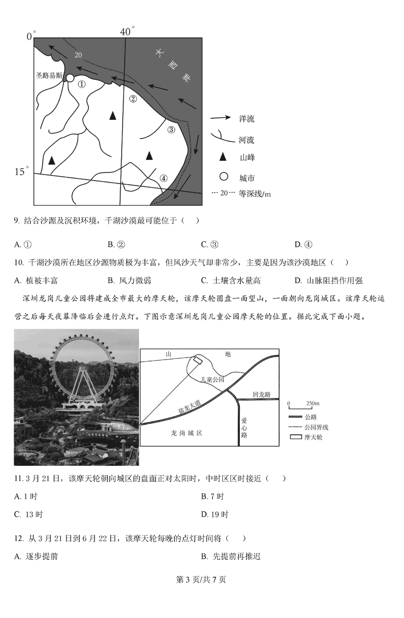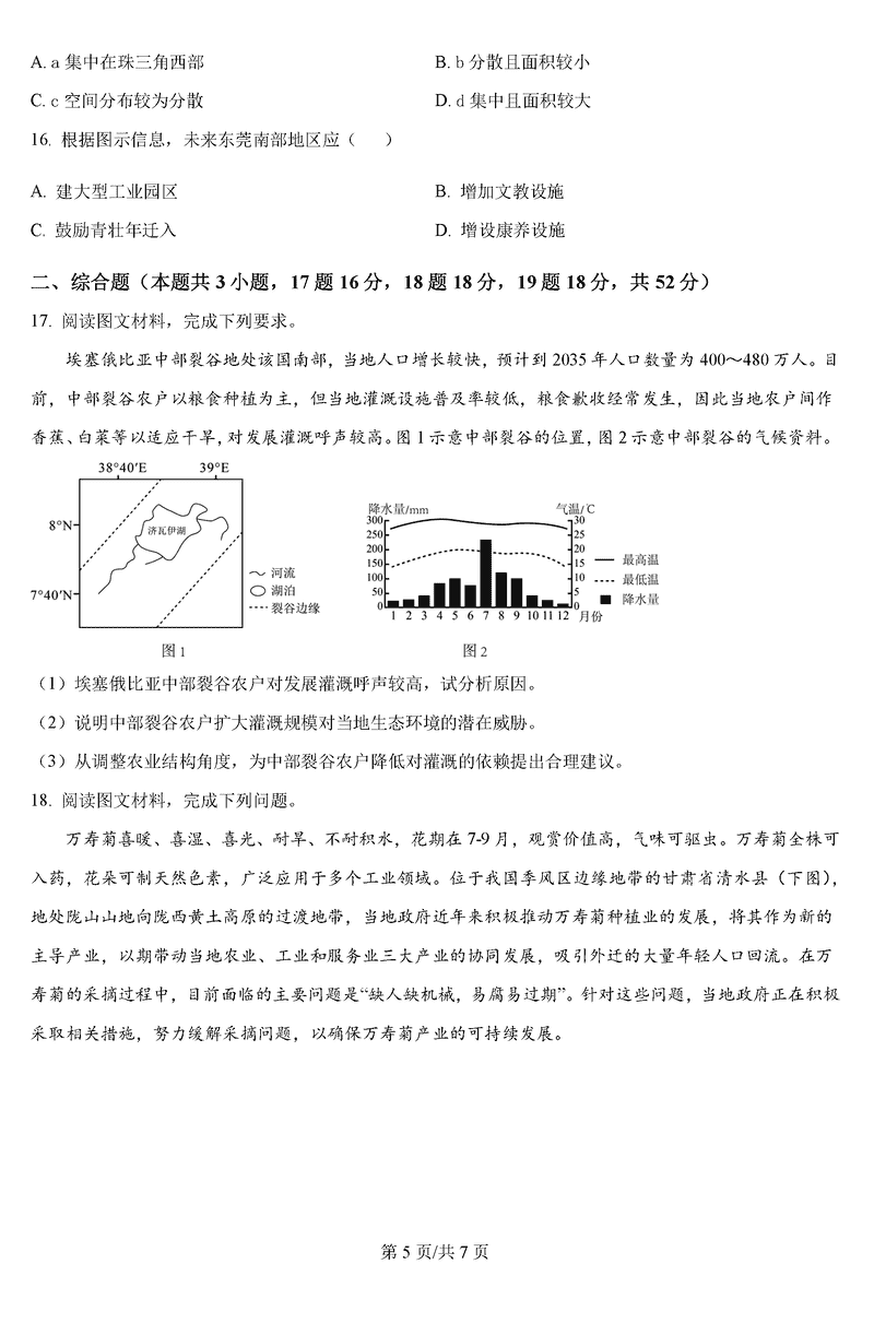 清远市清新区四校联考22025届高三上12月期末地理试题及答案