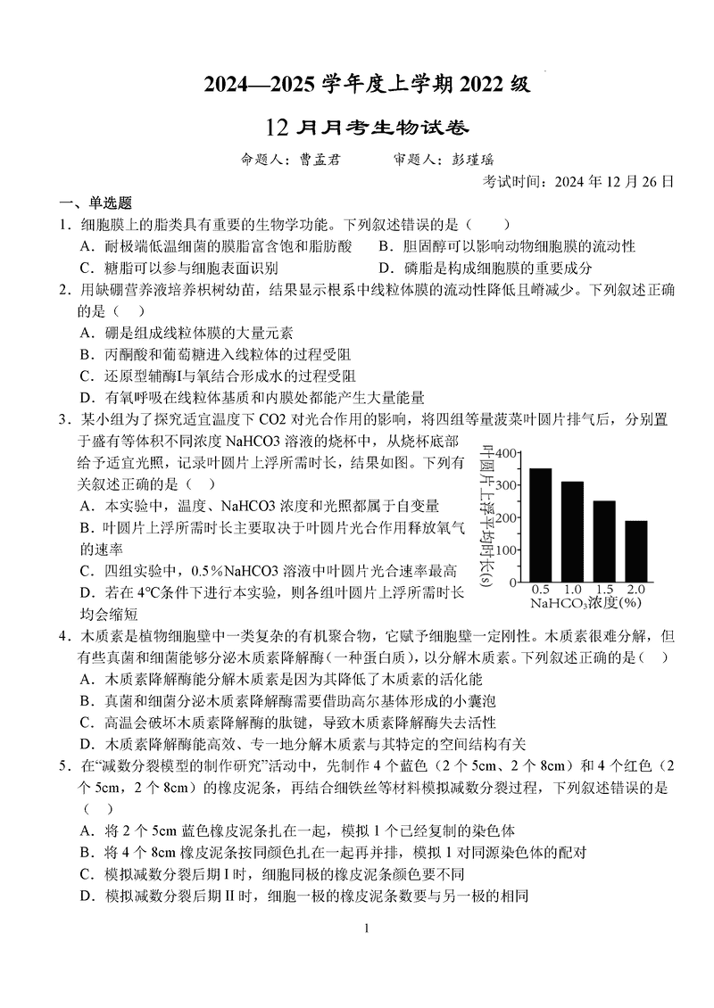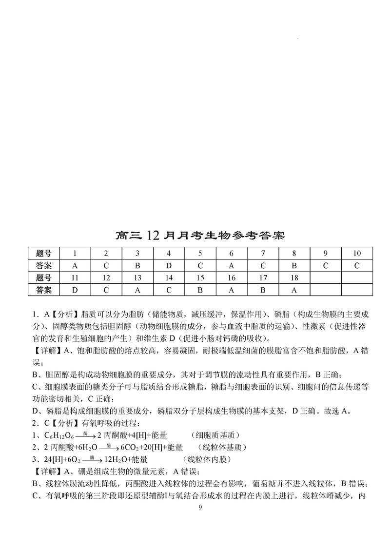湖北沙市中学2024-2025学年高三上12月月考生物考试已于近日开考,为方便考生考后及时查看考试情况,查漏补缺、弥补不足,本文整理了试题答案解析相关信息!