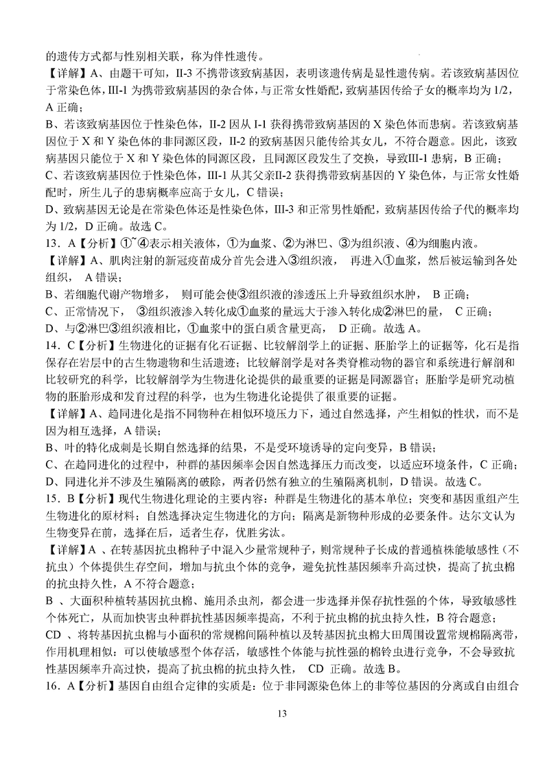 生物试题及答案解析