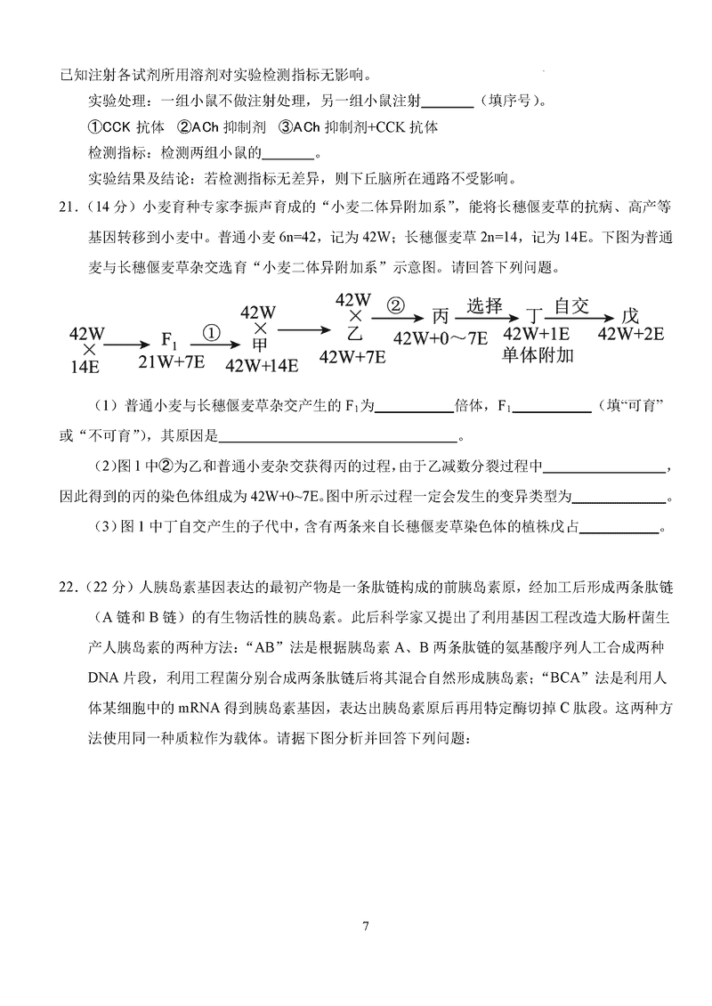 湖北 理综试题
