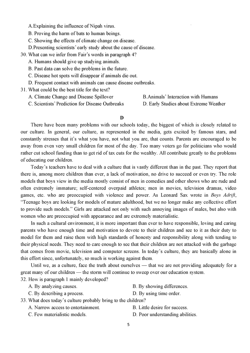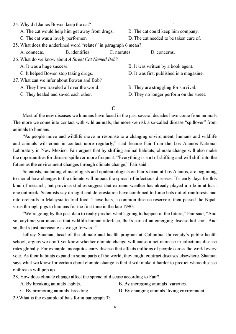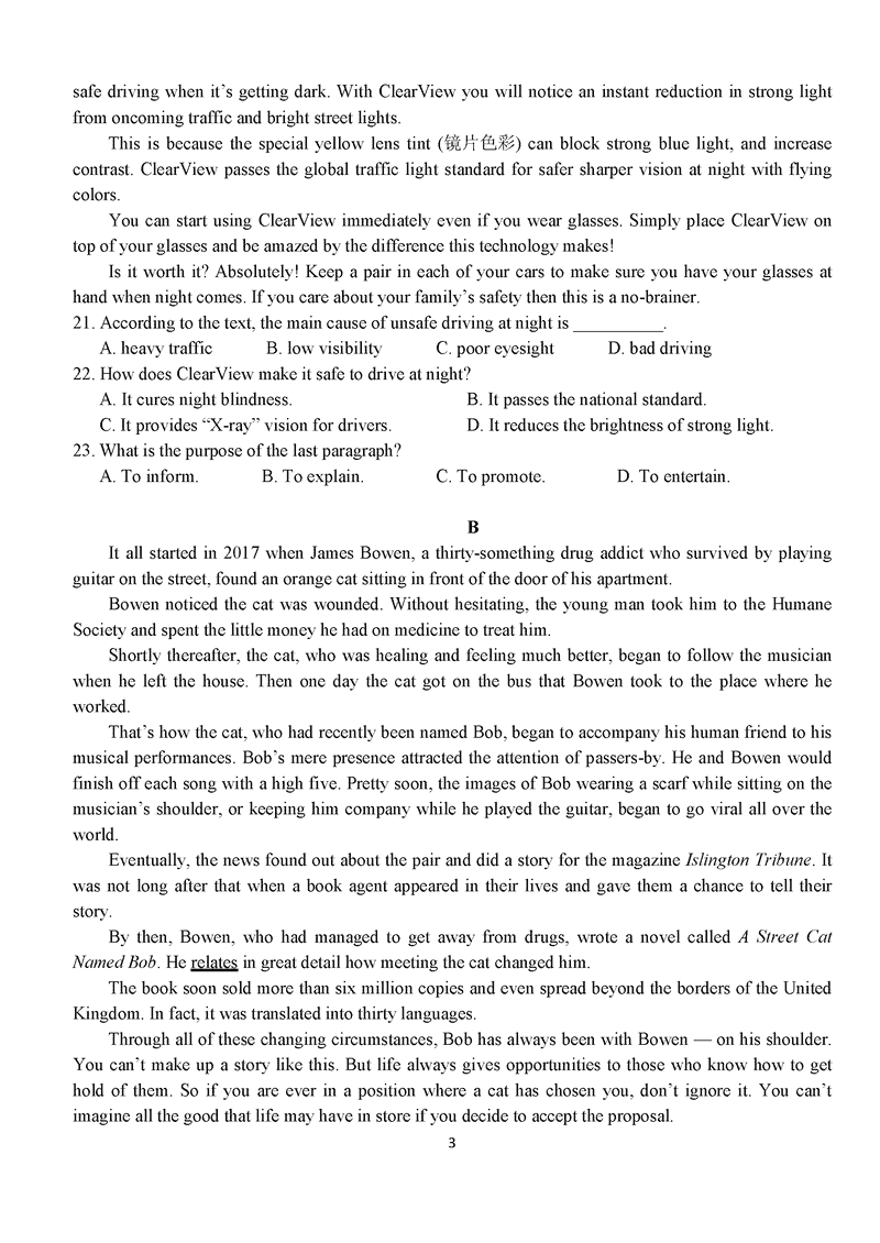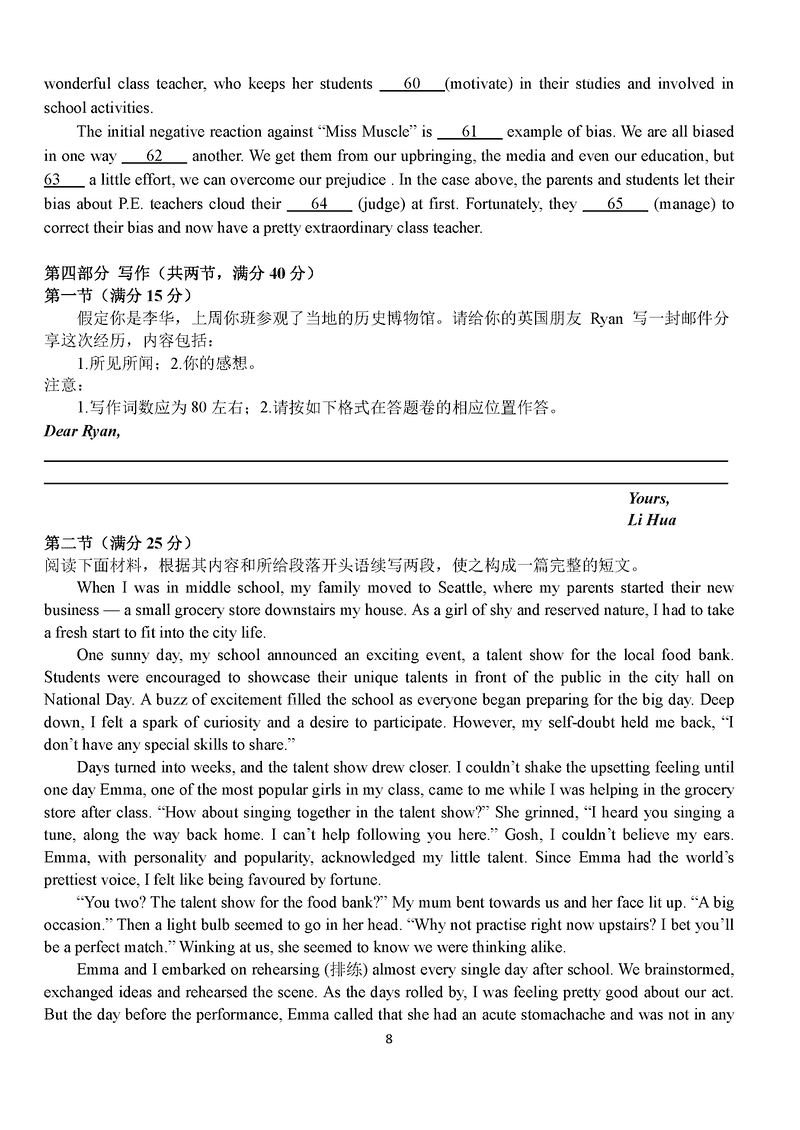 湖北 英语试题