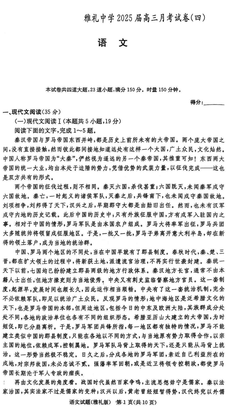 长沙雅礼中学2024-2025学年高三上学期月考(四)语文考试已于近日开考,为方便考生考后及时查看考试情况,查漏补缺、弥补不足,本文整理了试题答案解析相关信息!