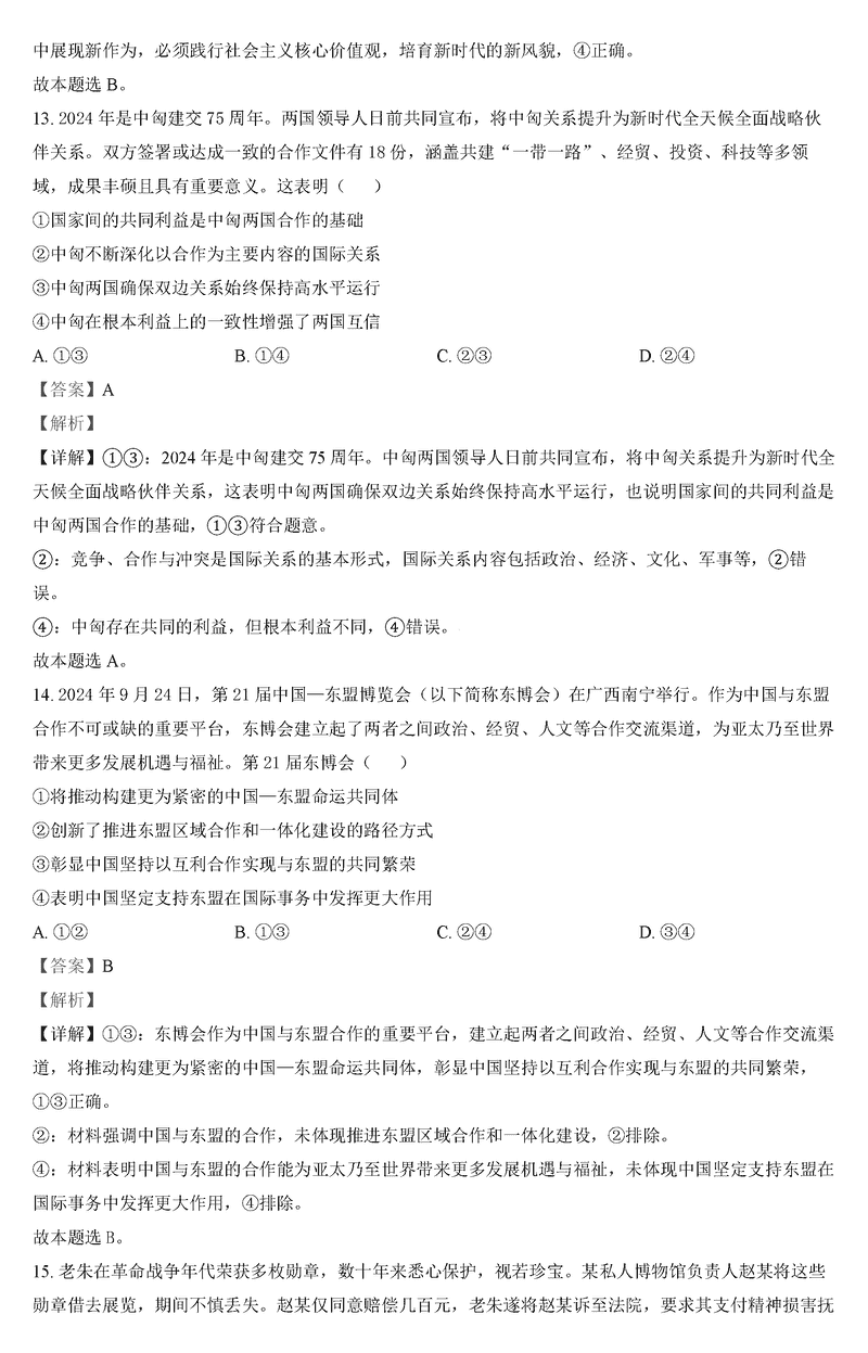 2025届湖南天一大联考暨郴州市高三教学质检政治试题及答案