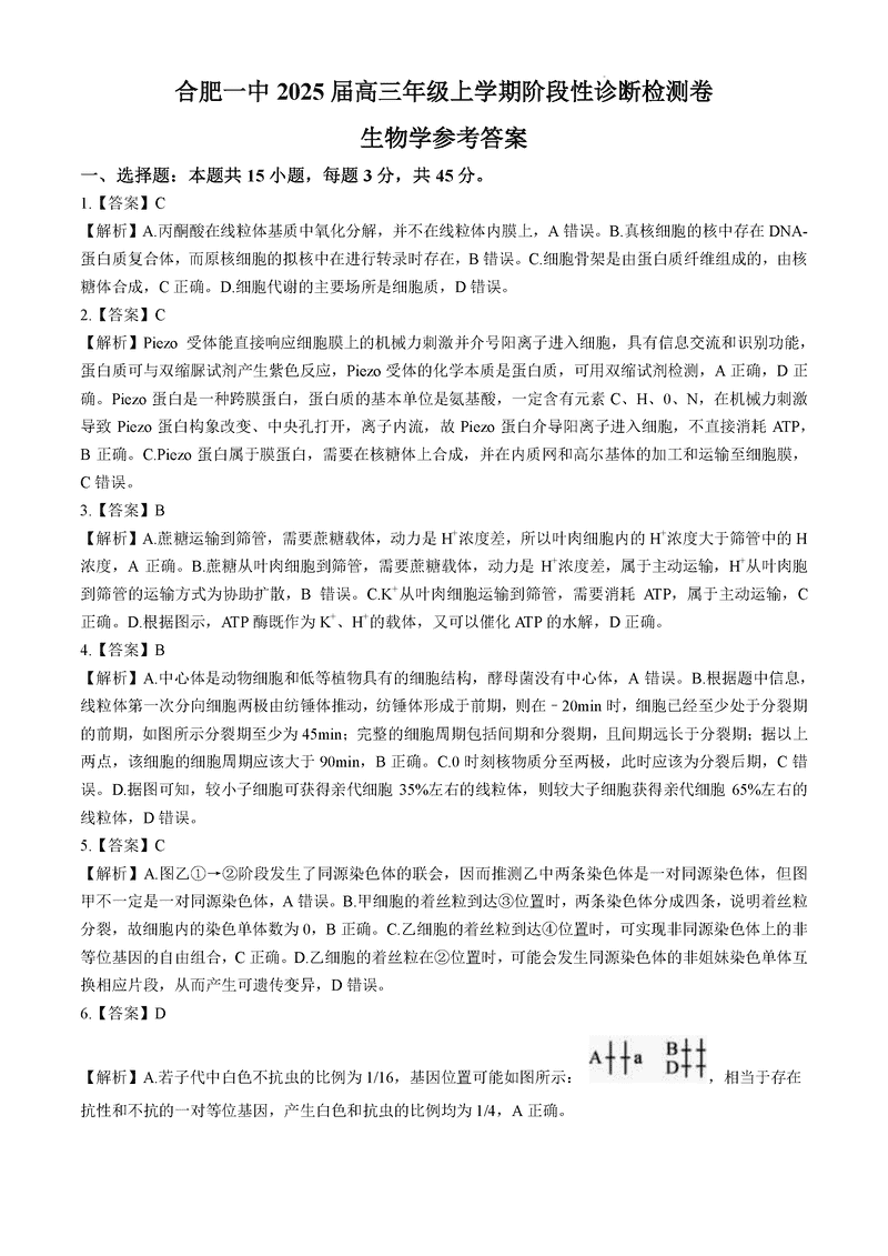 安徽省十联考合肥一中2025届高三上学期阶段性诊断检测生物考试已于近日开考,为方便考生考后及时查看考试情况,查漏补缺、弥补不足,本文整理了试题答案解析相关信息!