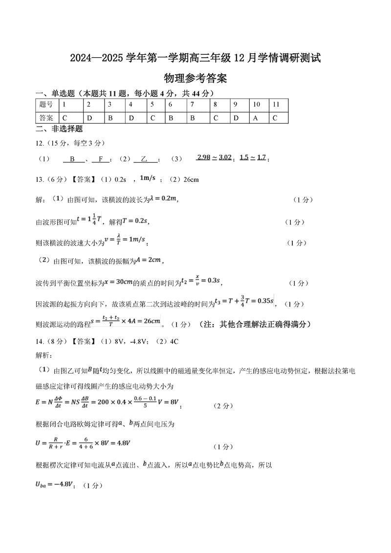 扬州市高邮市2024-2025学年高三上学期12月月考物理考试已于近日开考,为方便考生考后及时查看考试情况,查漏补缺、弥补不足,本文整理了试题答案解析相关信息!