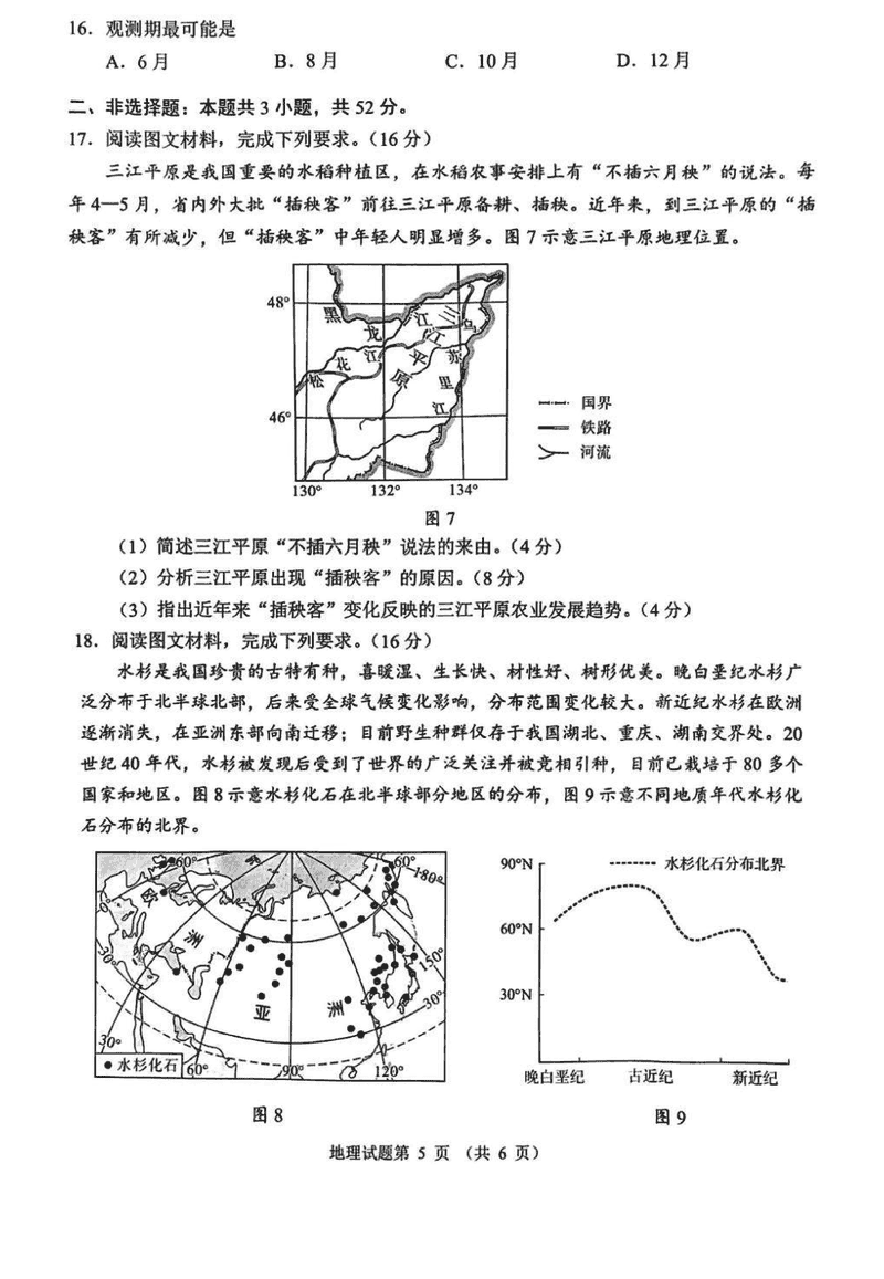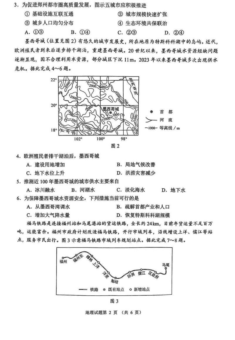 河南八省联考2025年高考综合改革适应性演练地理试题及答案