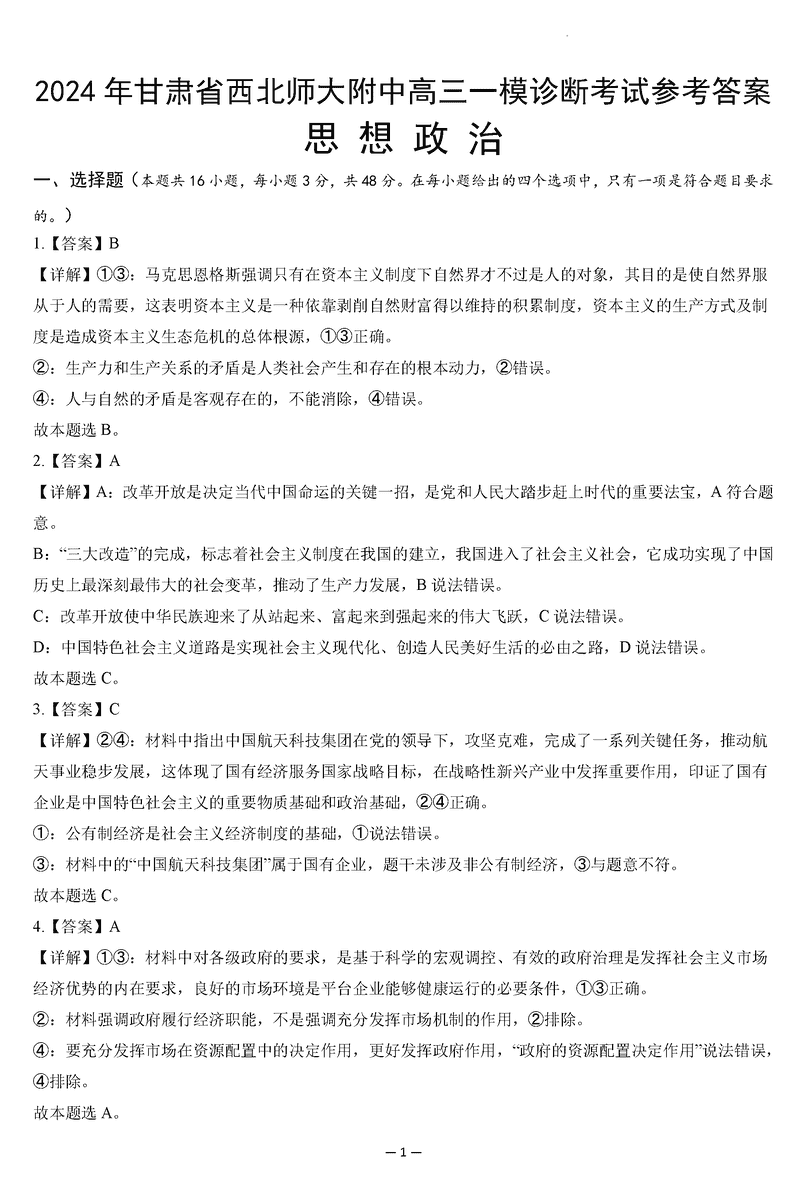 甘肃西北师大附中2025届高三上学期一模政治考试已于近日开考,为方便考生考后及时查看考试情况,查漏补缺、弥补不足,本文整理了试题答案解析相关信息!
