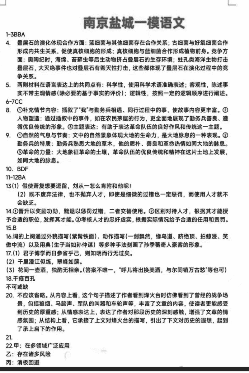 南京市、盐城市2025届高三上学期期末一模语文考试已于近日开考,为方便考生考后及时查看考试情况,查漏补缺、弥补不足,本文整理了试题答案解析相关信息!