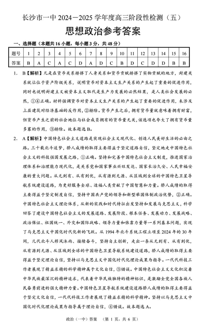 湖南长沙一中2025届高三上学期阶段性检测(五)政治考试已于近日开考,为方便考生考后及时查看考试情况,查漏补缺、弥补不足,本文整理了试题答案解析相关信息!